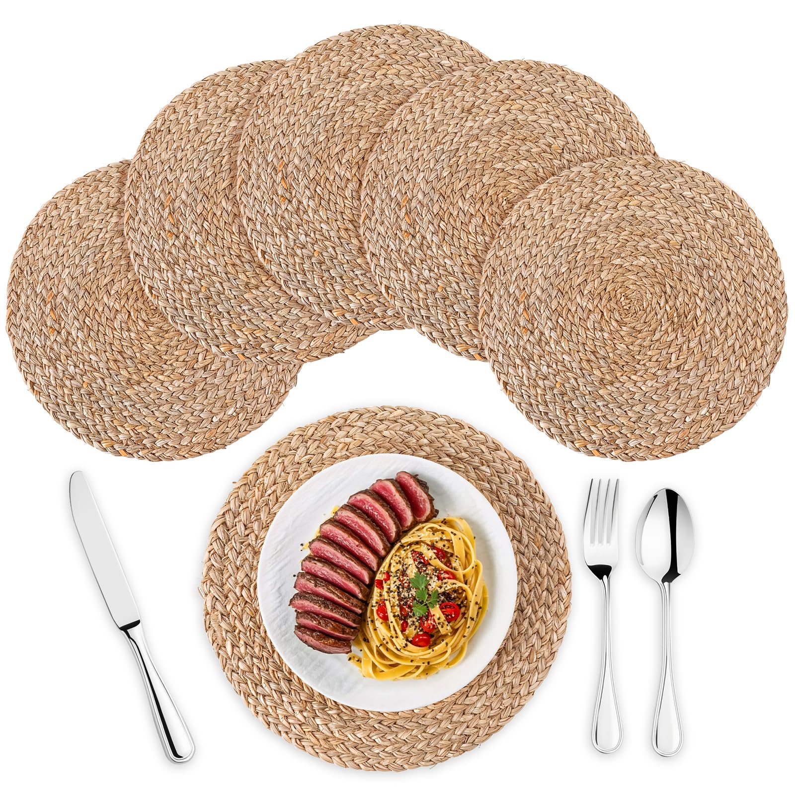 GENMOUS – Juego de 10 manteles individuales redondos de 12 pulgadas, manteles individuales bohemios de jacinto de agua natural, ca
