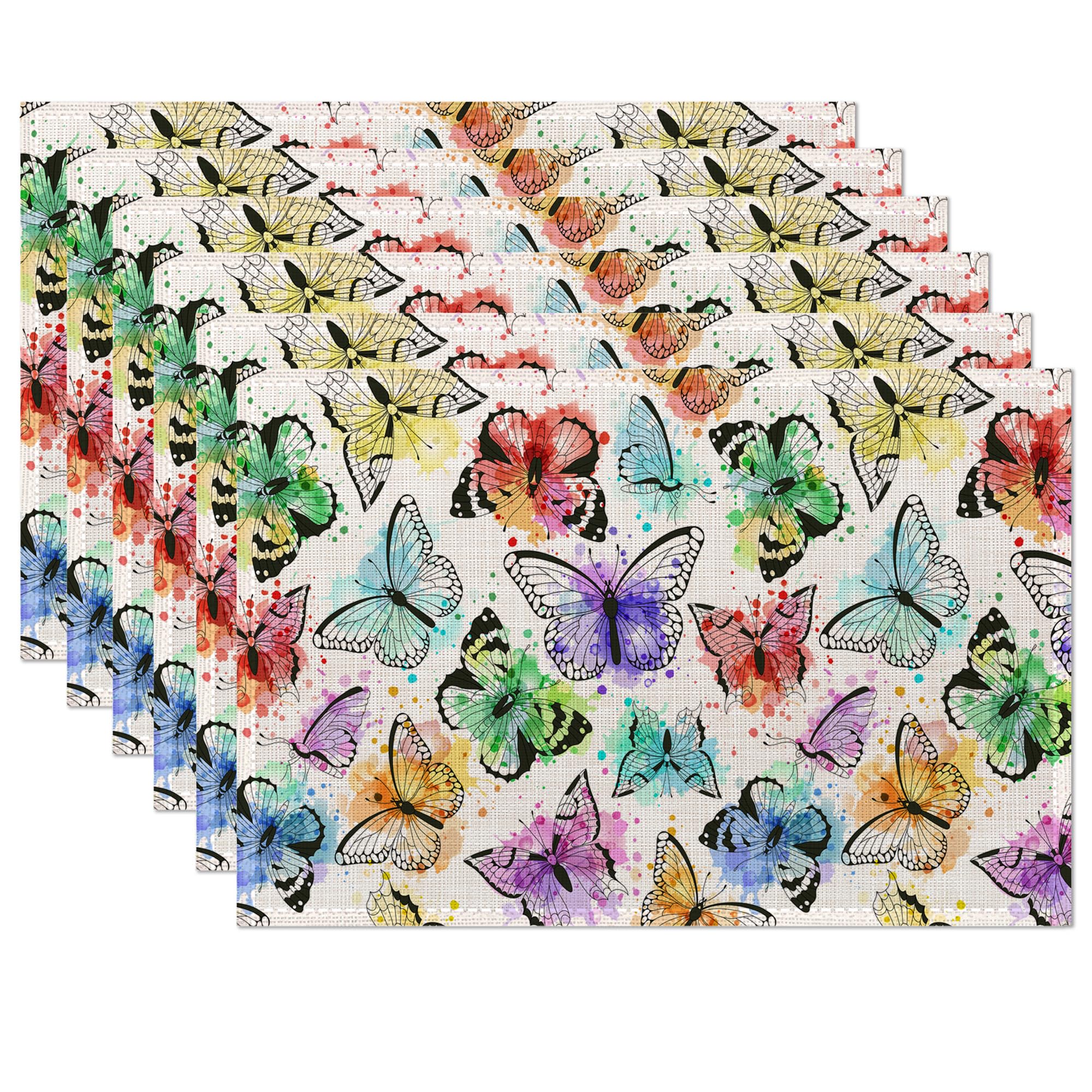 Manteles individuales de acuarela de mariposa de 12 x 18 pulgadas, impermeables, antideslizantes, lavables, para cocina, comedor,