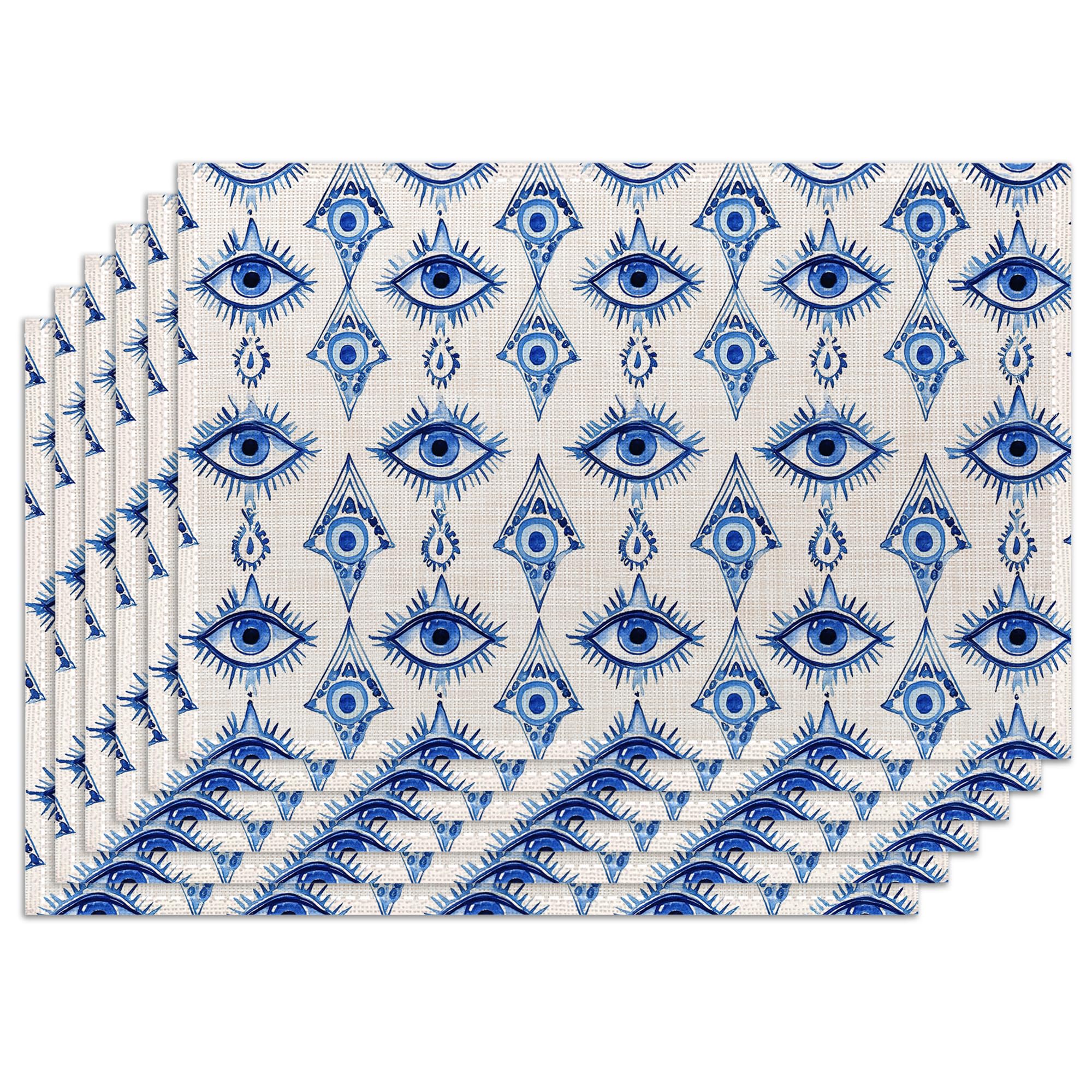 Juego de 6 manteles individuales de tela de ojos malvados, manteles individuales lavables abstractos, antideslizantes, resistentes