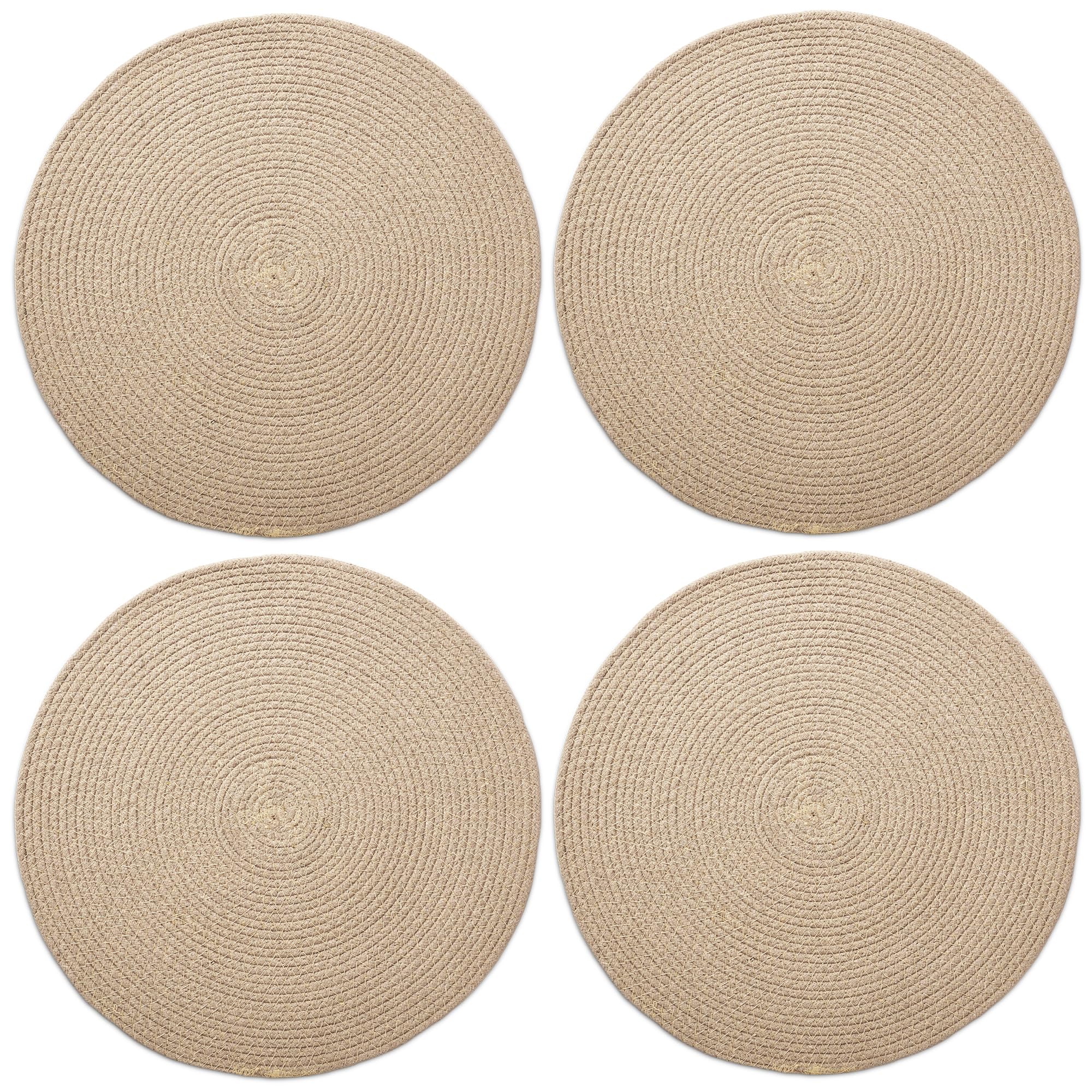 Encasa XO Juego de 4 manteles individuales de comedor, manteles individuales de algodón, 13 pulgadas de diámetro, color beige, car