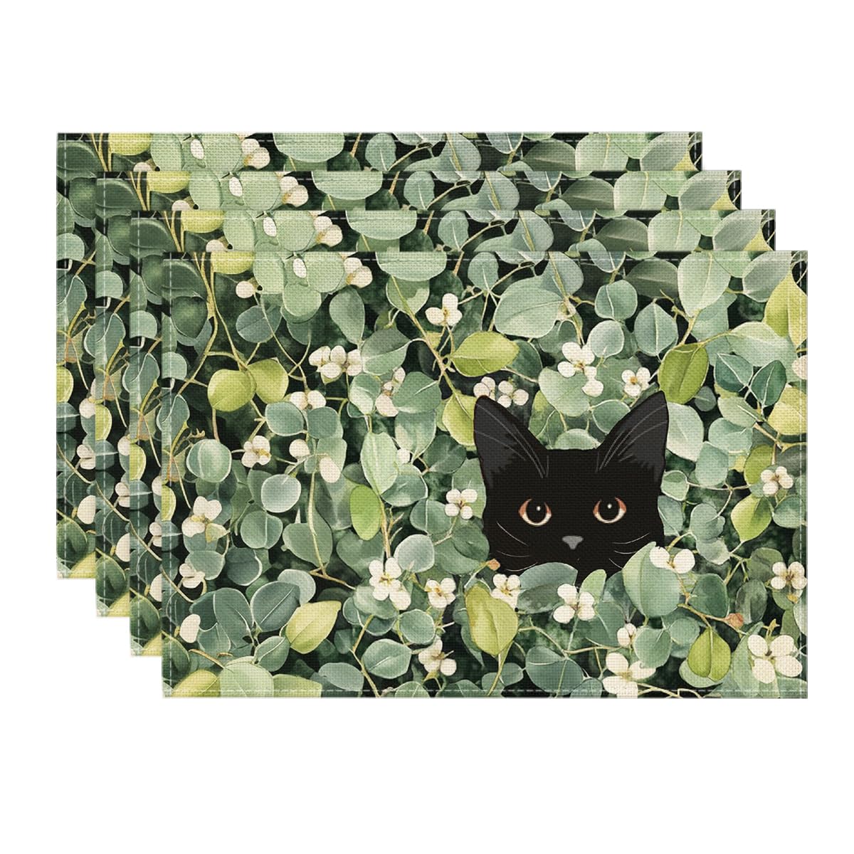 Artoid Mode Juego de 4 manteles individuales de Eucalyptus Cat Summwe de 12 x 18 pulgadas para decoración de fiestas, cocina, come