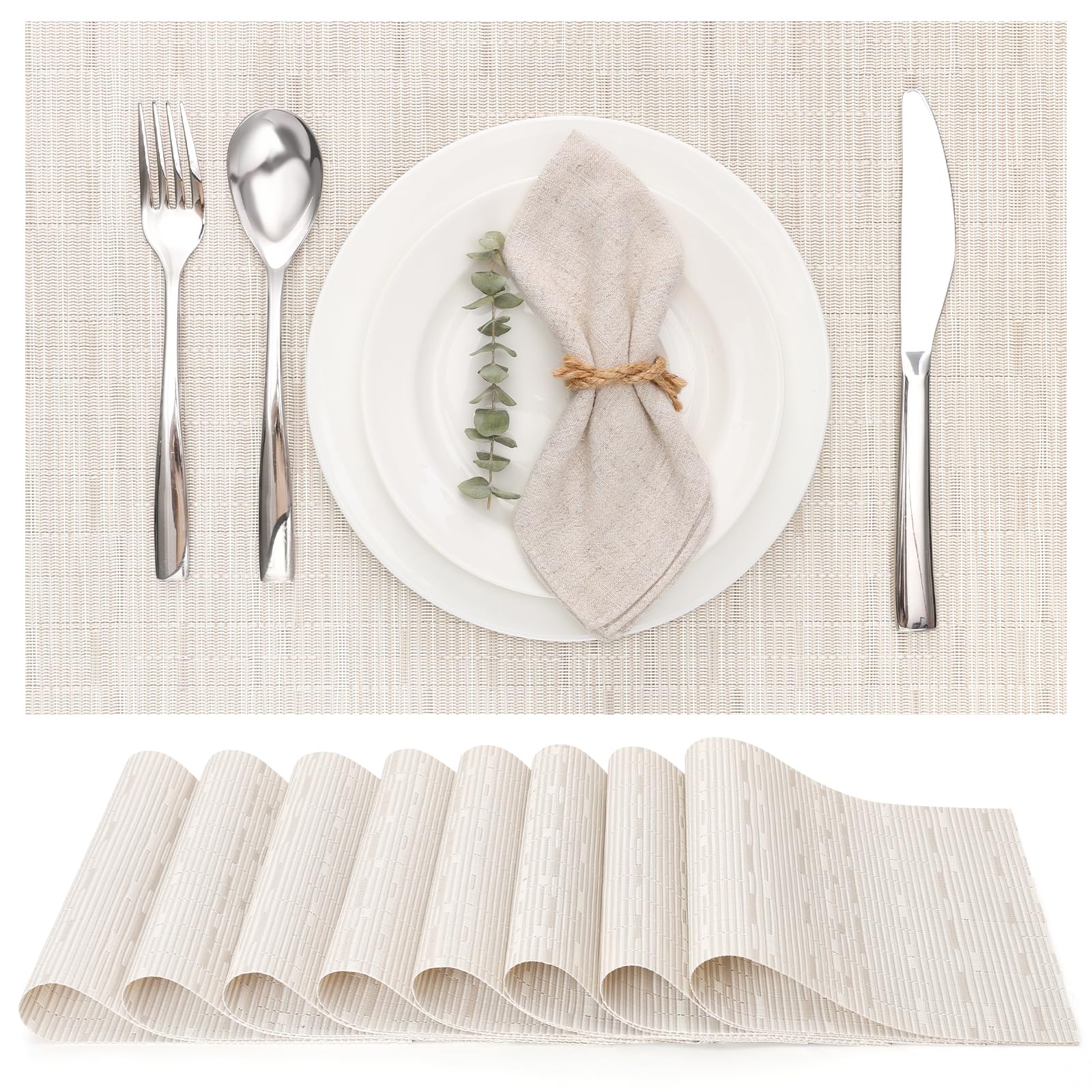 Juego de 8 manteles individuales de tela tipo lino, lavables a máquina, resistentes al calor, sin arrugas, de poliéster grueso, pa