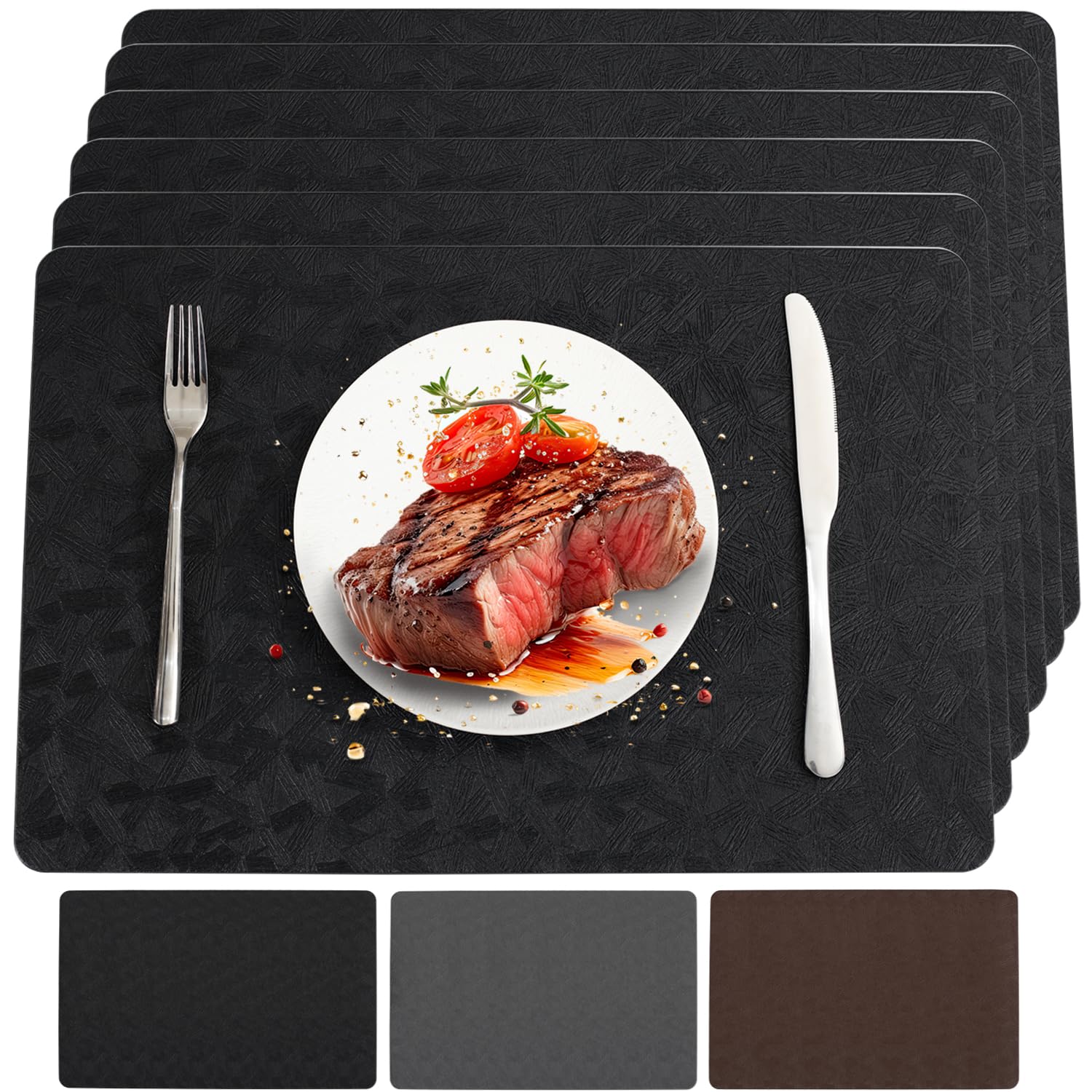 DOLOPL Juego de 6 manteles individuales, color negro, impermeables, de piel sintética, resistentes al calor, para decoración de me