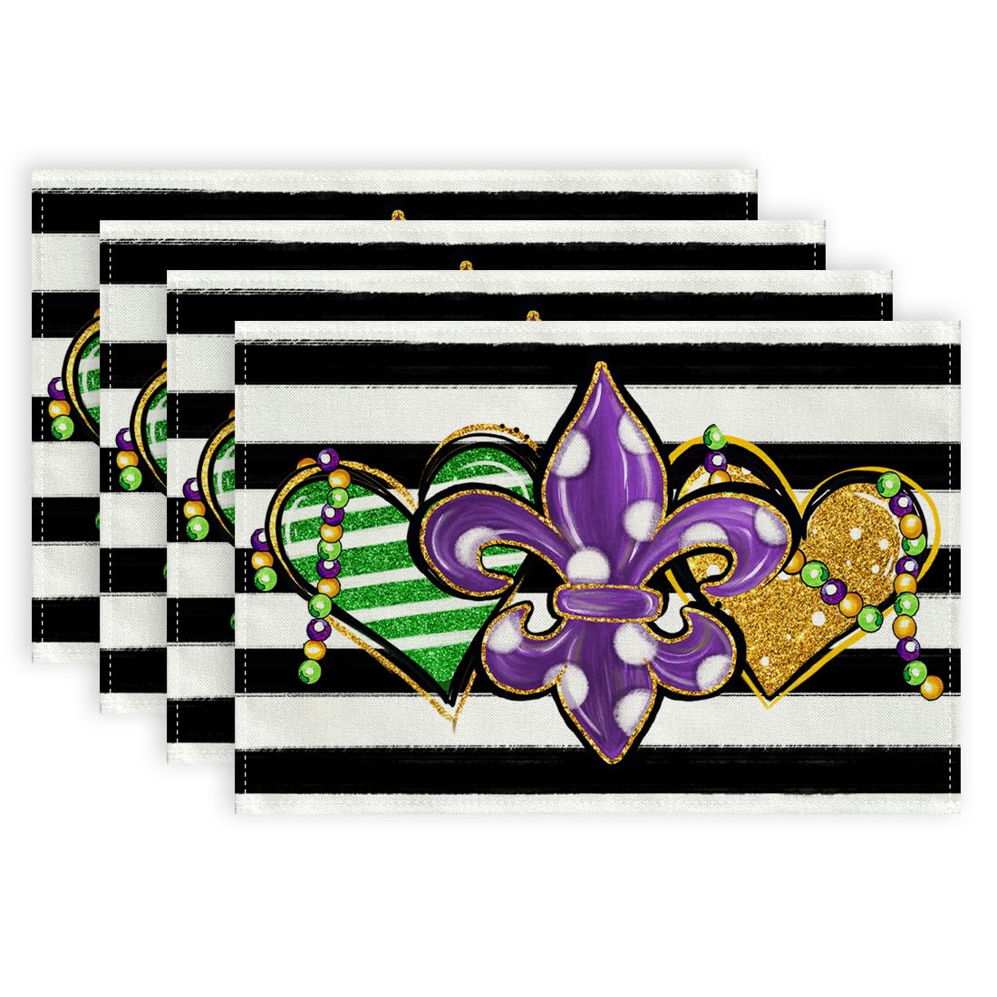 ARKENY Juego de 4 manteles individuales de Mardi Gras de 18 x 12 pulgadas, decoración de mesa de carnaval, decoración de mesa de c
