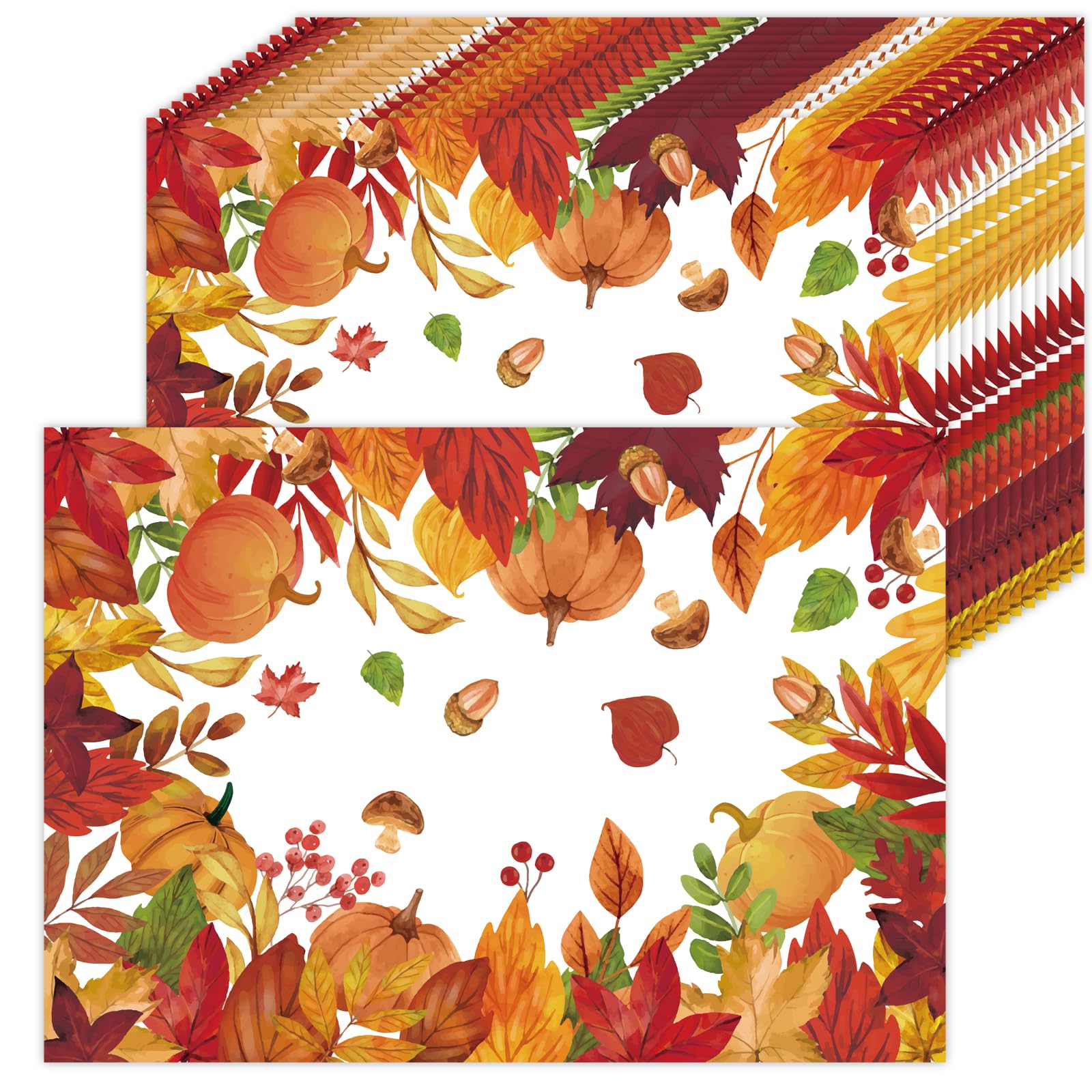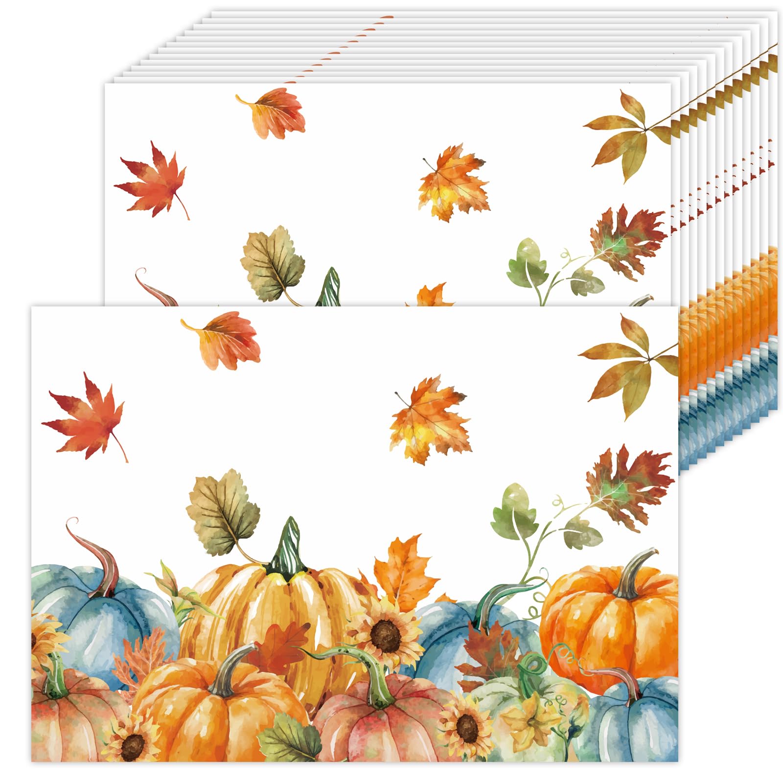50 Pack Watercolor Pumpkin Leaves Paper Placemats,16x 11 Inch Rustic Autumn Maple Leaves Disposable Placemats Orange Fall Paper Ta