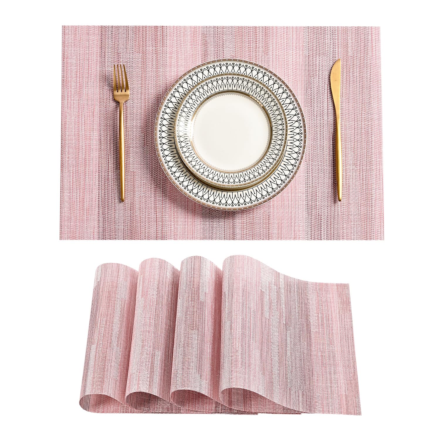 Leetaltree Misty Rose – Juego de 4 manteles individuales resistentes al calor, antideslizantes, para mesa de comedor, lavables, du