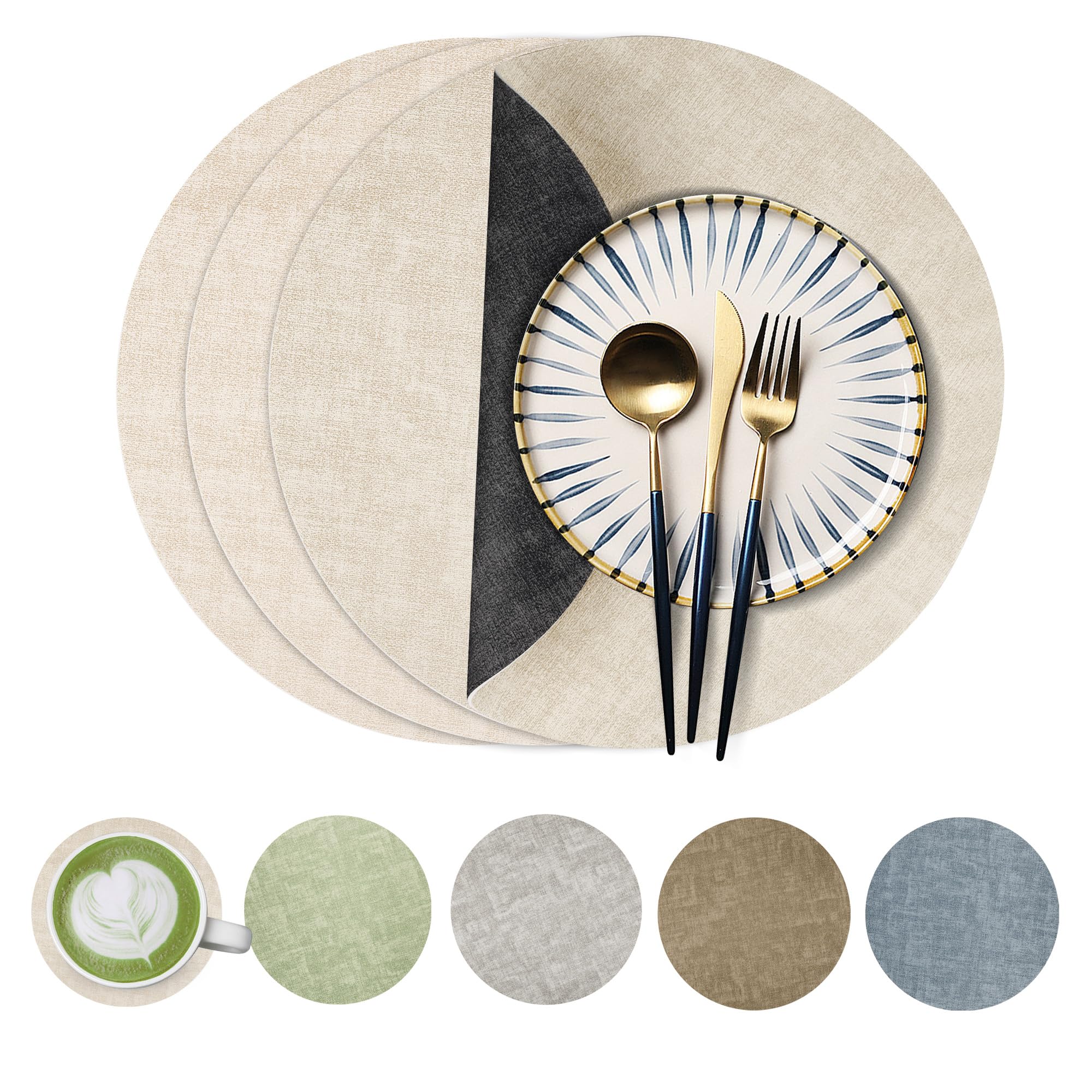 Juego de 4 manteles individuales redondos de piel sintética, impermeables, antideslizantes, de doble cara, resistentes al calor, l