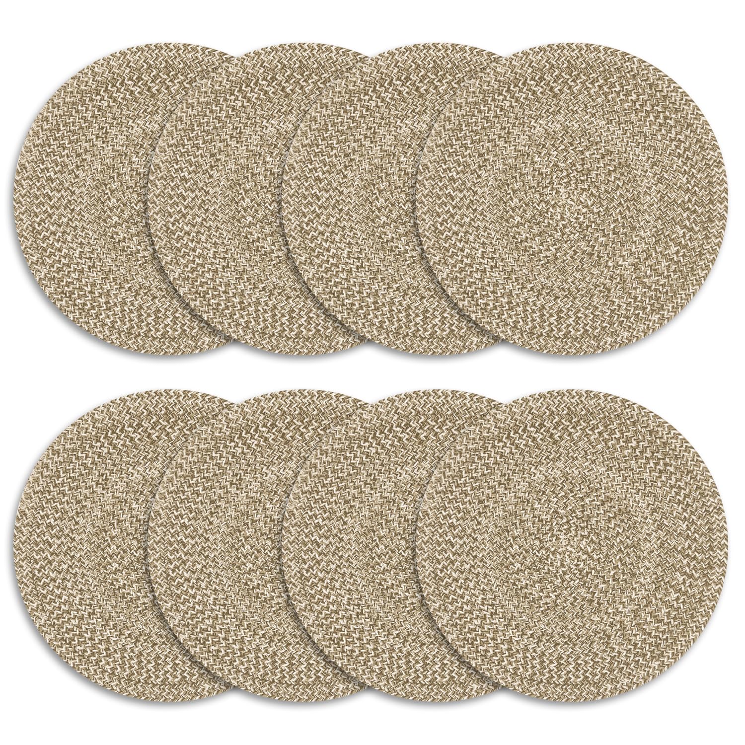 Marled Twist – Juego de 8 manteles individuales redondos de algodón de 15 pulgadas, color beige, resistente al calor, manteles dur