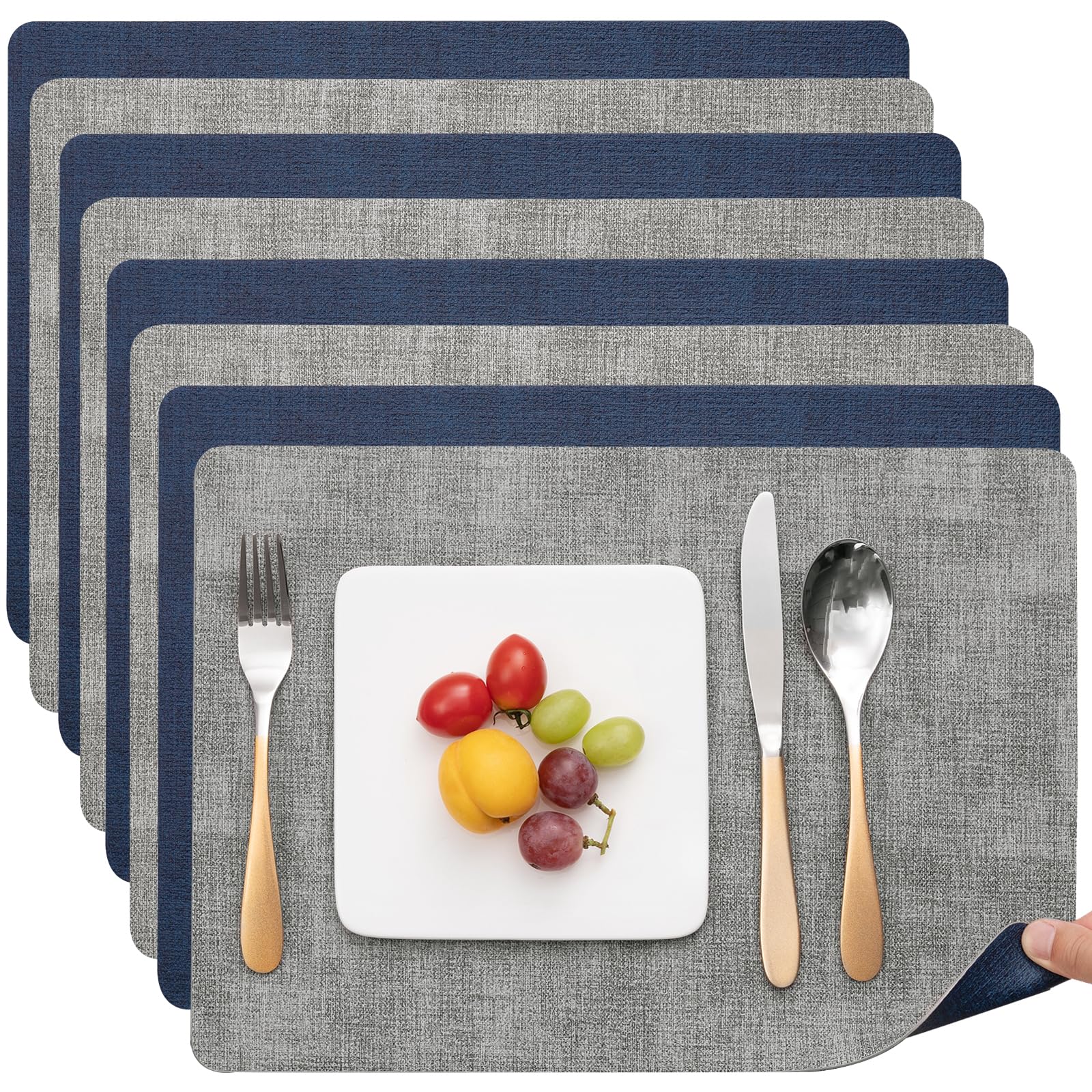Juego de 6 manteles individuales de tela tipo lino, resistentes al calor, antideslizantes, lavables a máquina, manteles individual