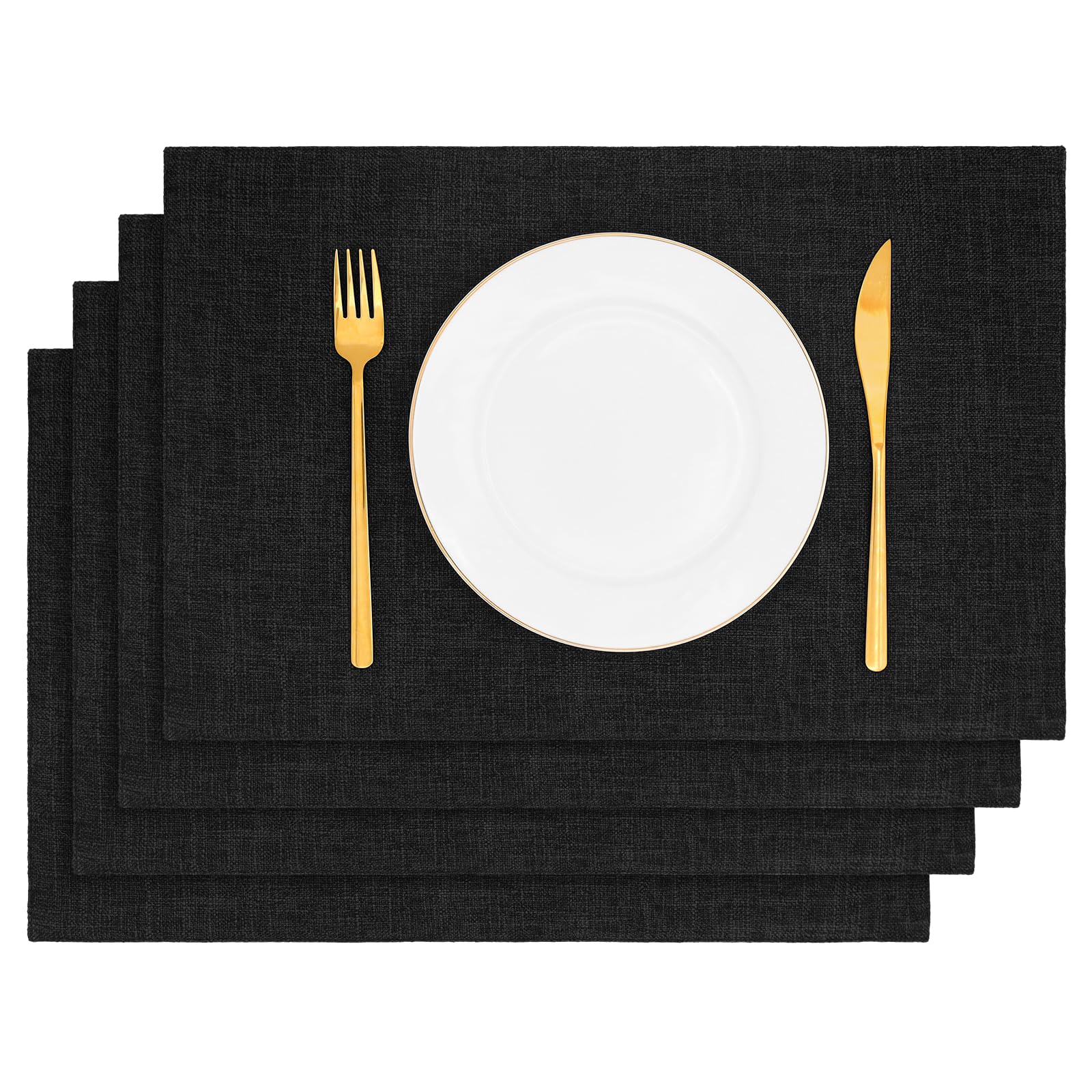Juego de 4 manteles individuales de lino negro resistentes al calor para mesa de comedor, manteles lavables de doble capa de arpil