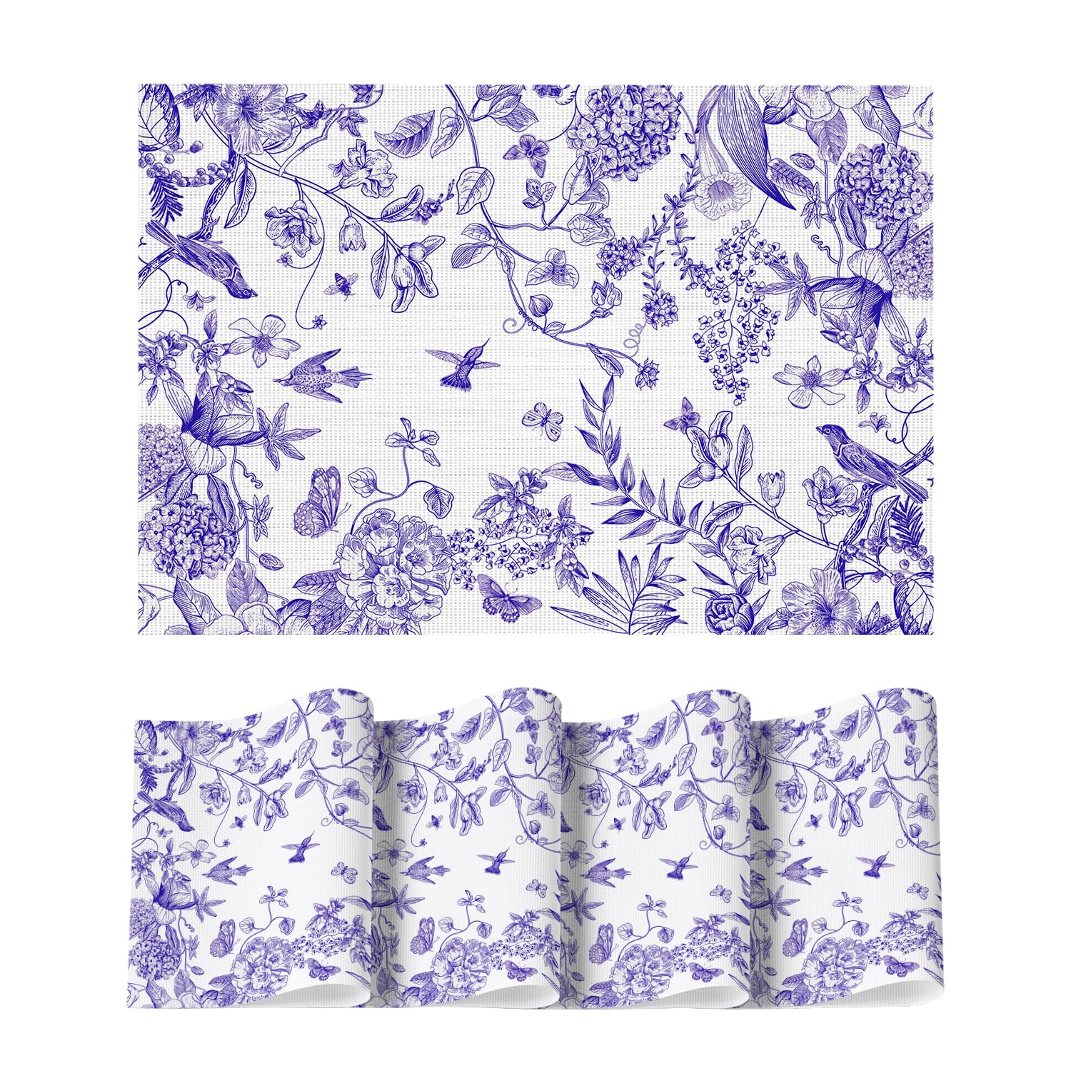 Artoid Mode Juego de 4 manteles individuales de vinilo de plástico con diseño de hortensias moradas, diseño de ramas de hortensias