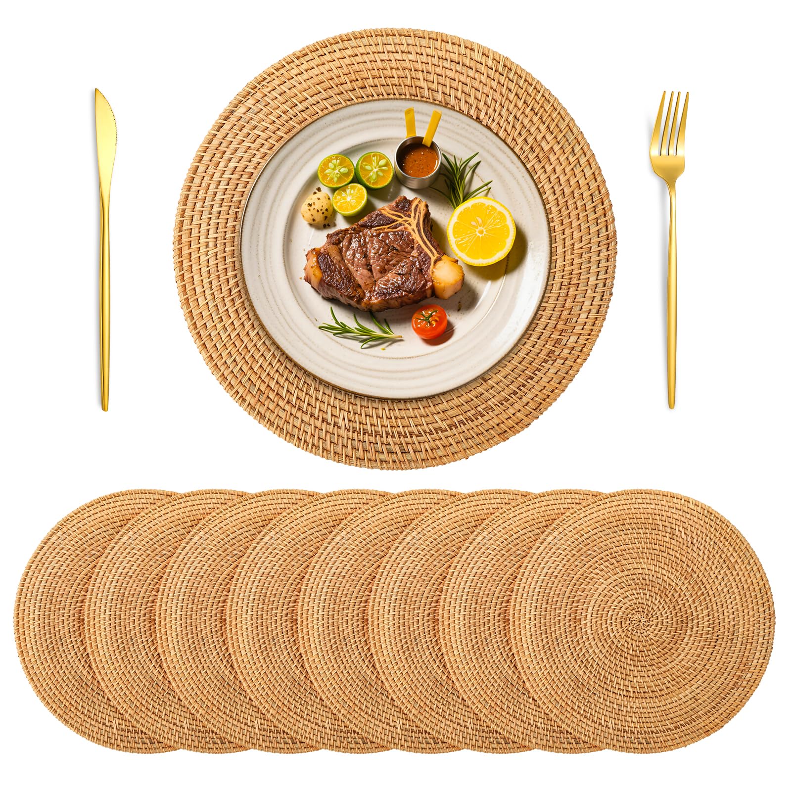 Paquete de 8 manteles individuales de ratán, 13 pulgadas, redondos, bohemios, tejidos, para decoración de mesa de comedor, otoño,
