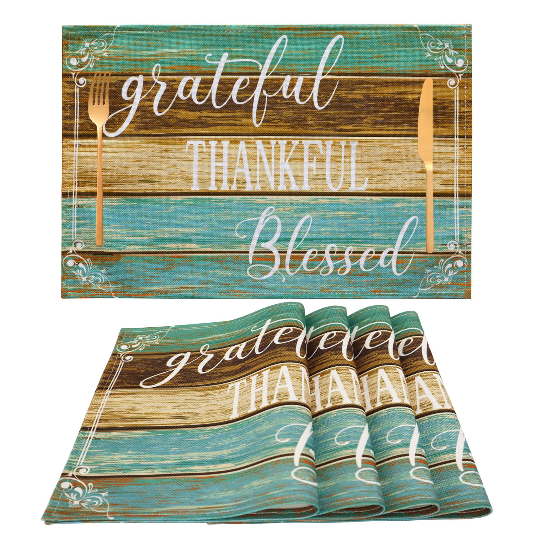 Juego de 4 manteles individuales para mesa de granja, de lino, lavables, resistentes al calor, tela lavable, impermeable, rectangu
