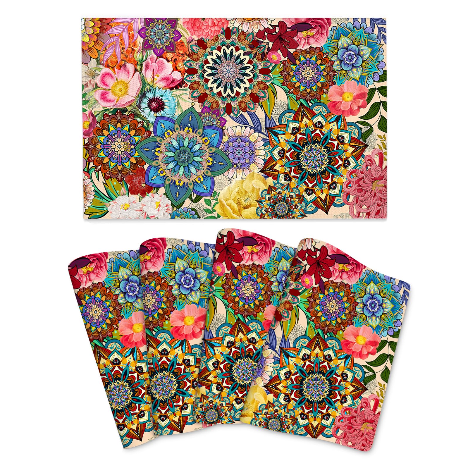 Juego de 4 manteles individuales florales bohemios, coloridos manteles decorativos para mesa de comedor, 12 x 18 pulgadas, tapete