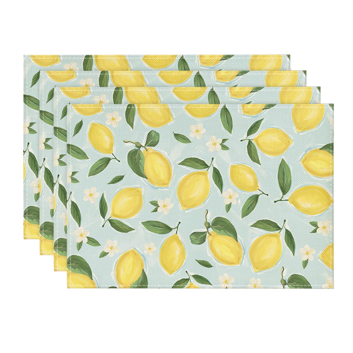 Artoid Mode Juego de 4 manteles individuales florales de verano con flores de limón azul, 12 x 18 pulgadas, manteles individuales
