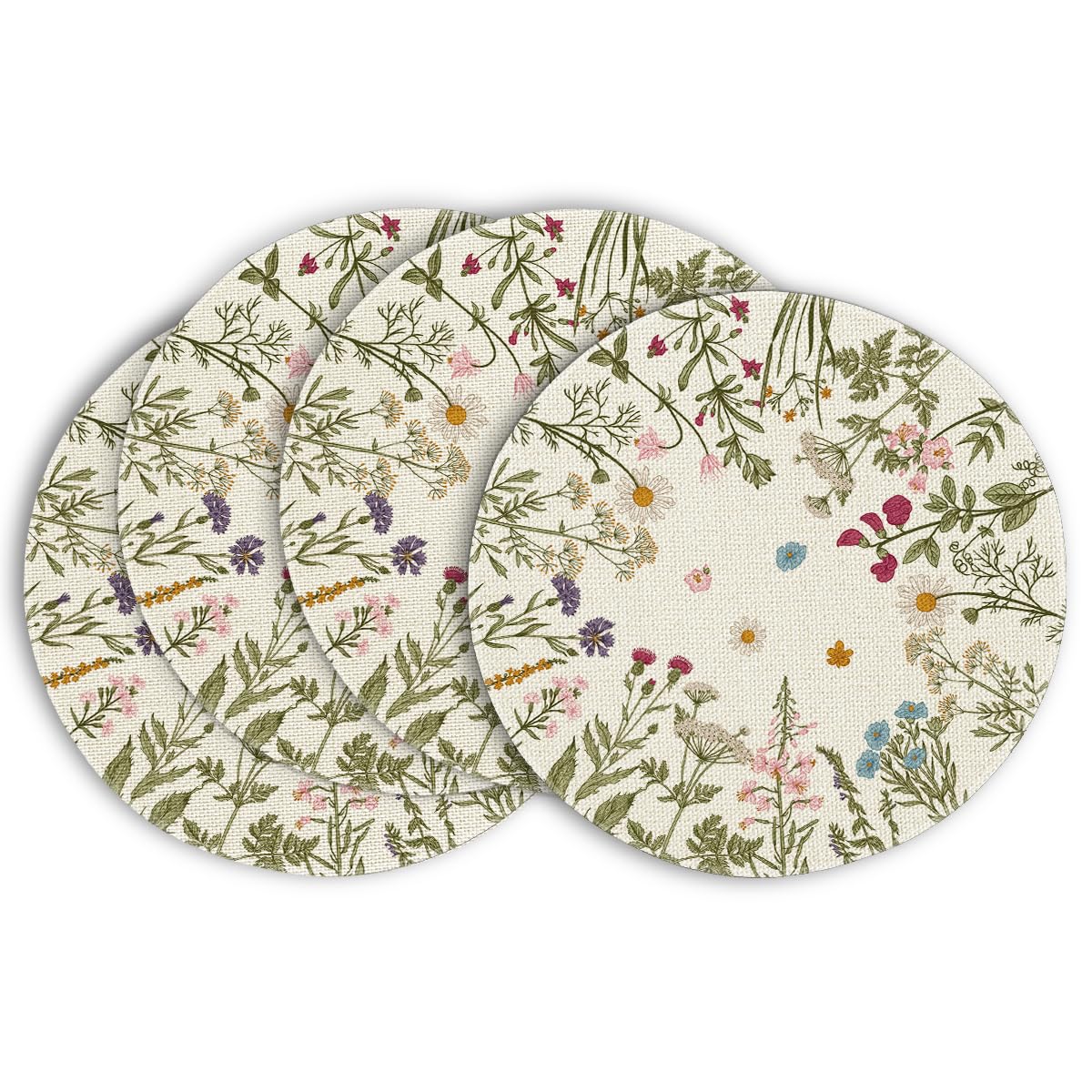 Artoid Mode Juego de 4 manteles individuales de primavera con diseño de flores silvestres y hierbas antiguas, manteles redondos de