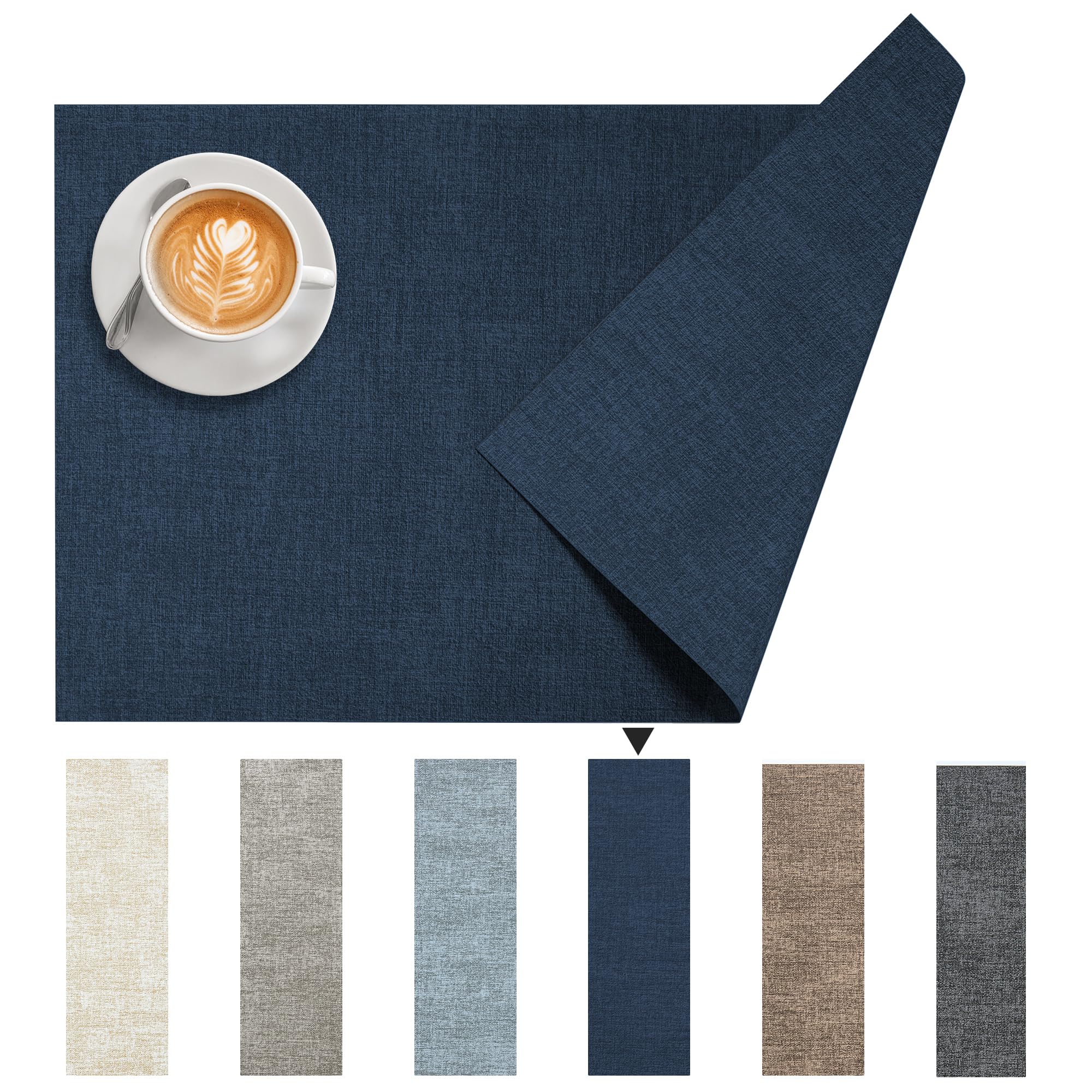DOLOPL Juego de 6 manteles individuales elegantes de doble cara azul marino para mesa de comedor, resistentes al calor, a prueba d