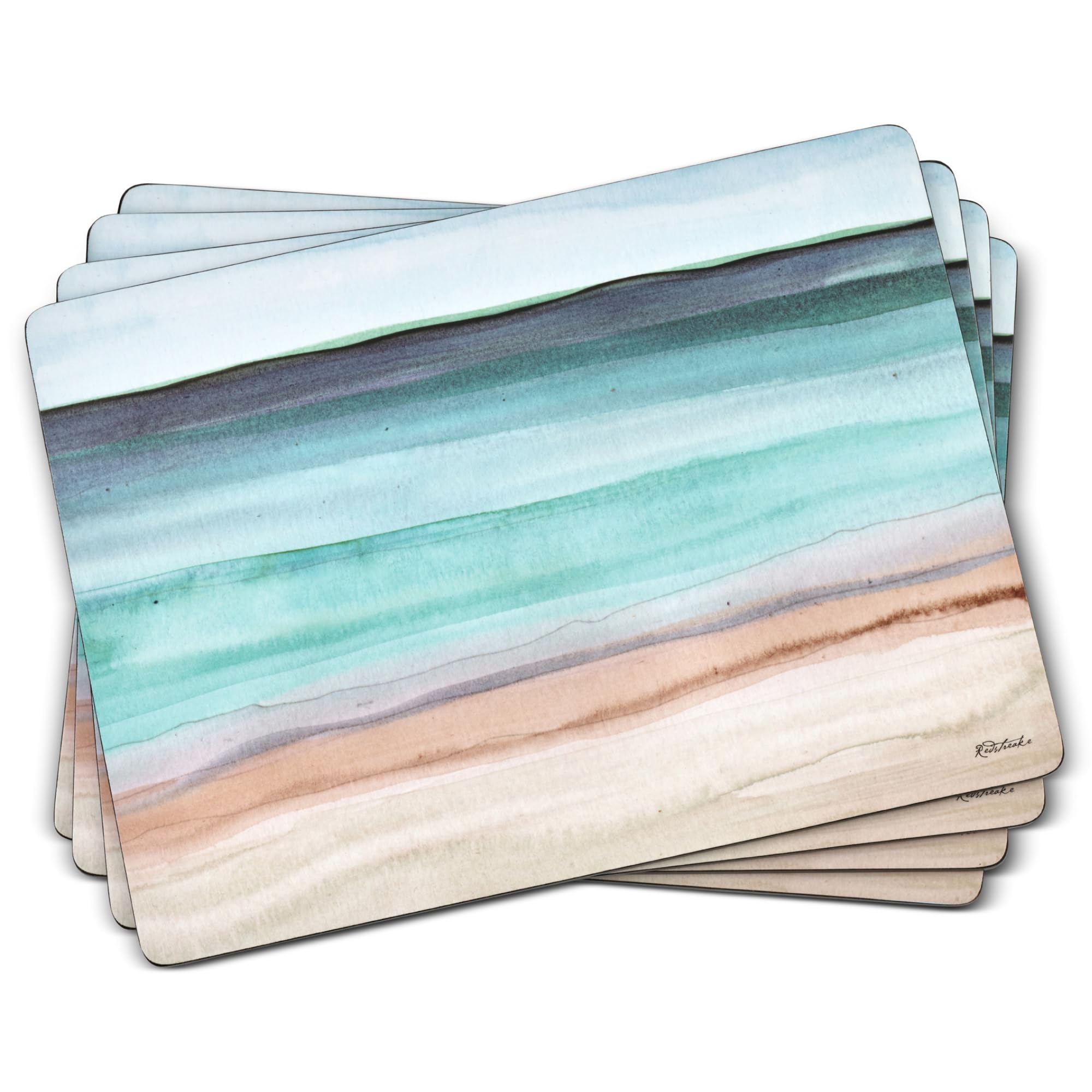 Pimpernel Coastal Shore – Juego de 4 manteles individuales rectangulares con respaldo de corcho con obras de arte inspiradas en el