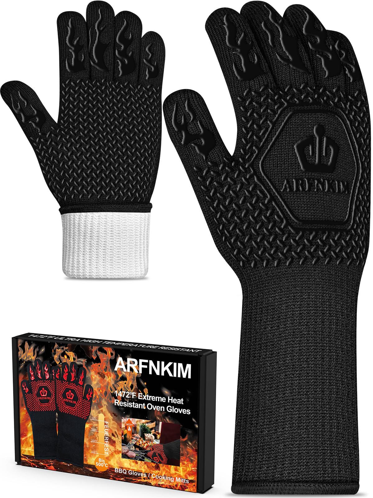 Guantes de horno Grill Armor de 932 °F resistentes al calor extremo y a los cortes con dedos para barbacoa, cocinar, asar, hornear