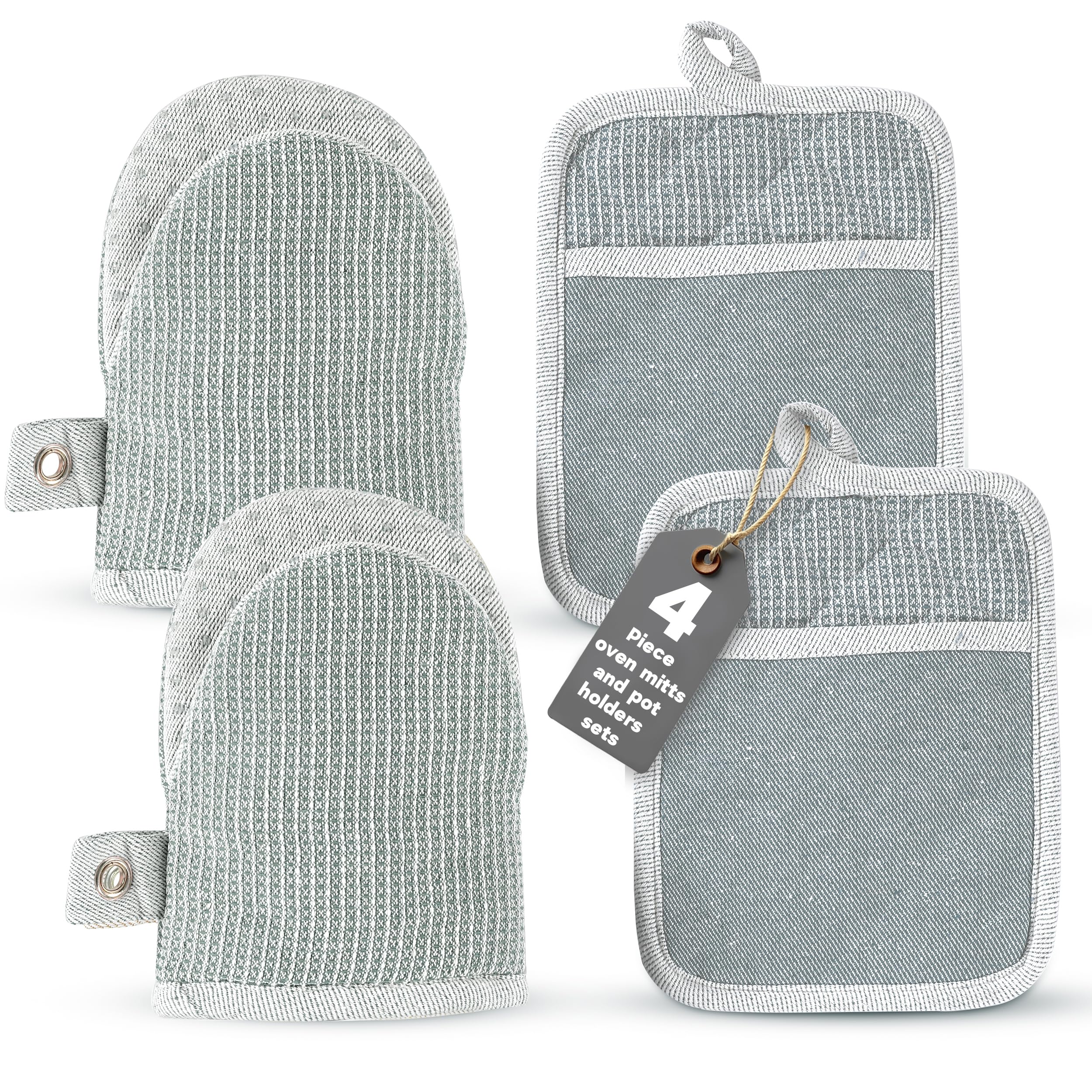 Casa Platino Manoplas y agarraderas resistentes al calor, 4 piezas, guantes de horno y soportes para ollas para hornear, asar a la
