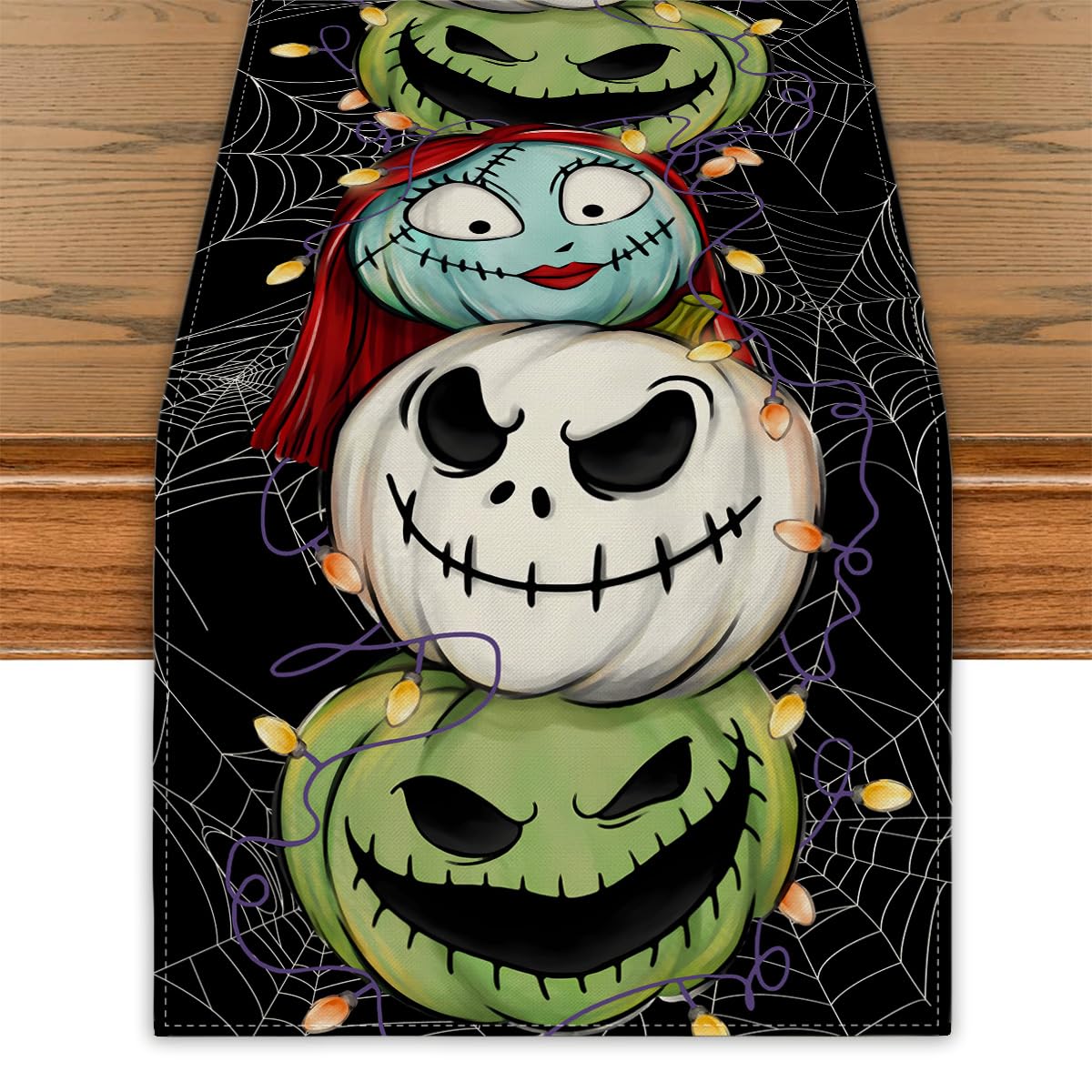 Halloween Table Runner Pumpkin Ghost Table Cover Spooky Skeleton Decor Halloween Decorations for Home Party-108inch Long