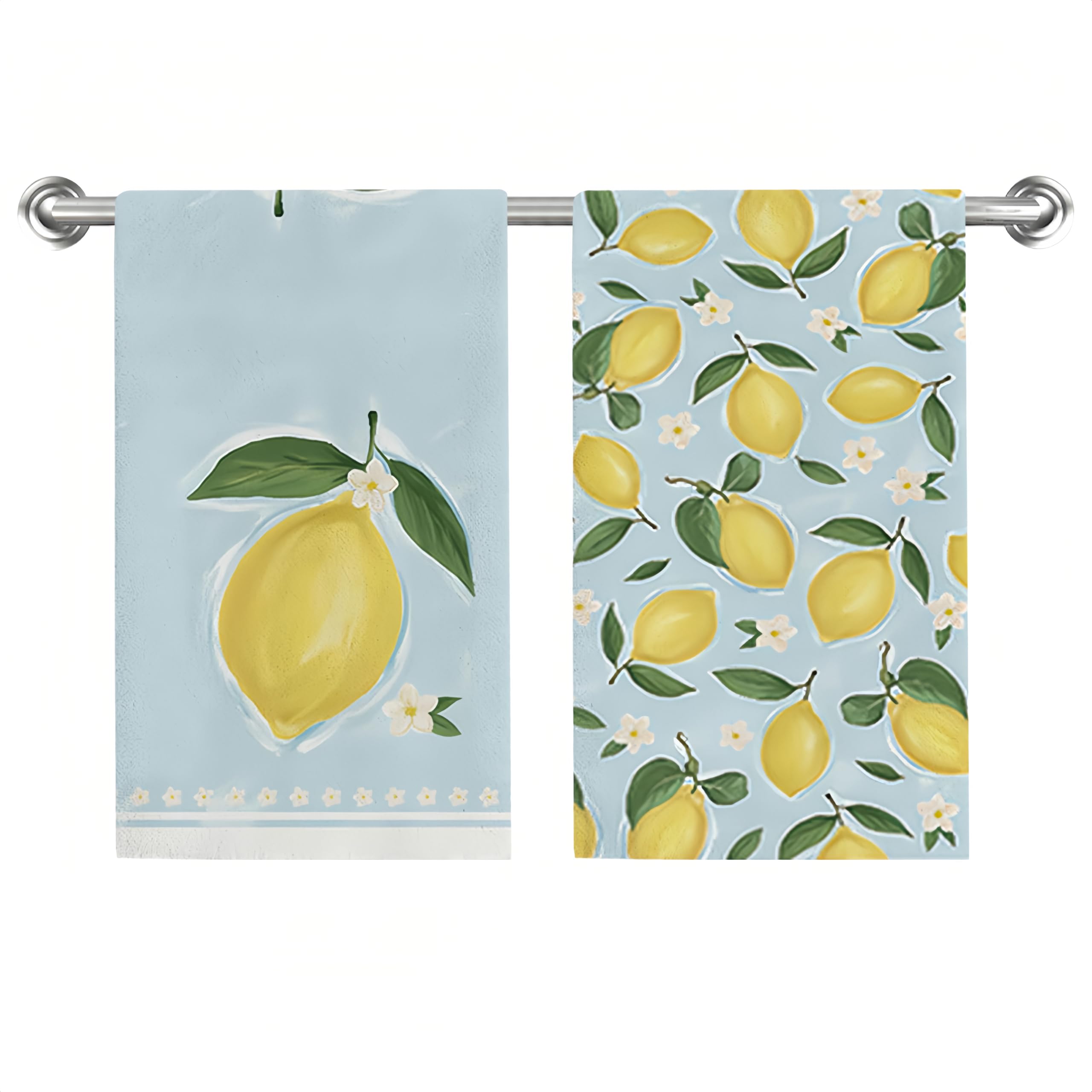 Lemon Summer Kitchen Towels Dish Towels Set of 2,White Flower Seasonal Holiday Hand Towels 18×26 Inch Drying Dishcloth,Summer Dish