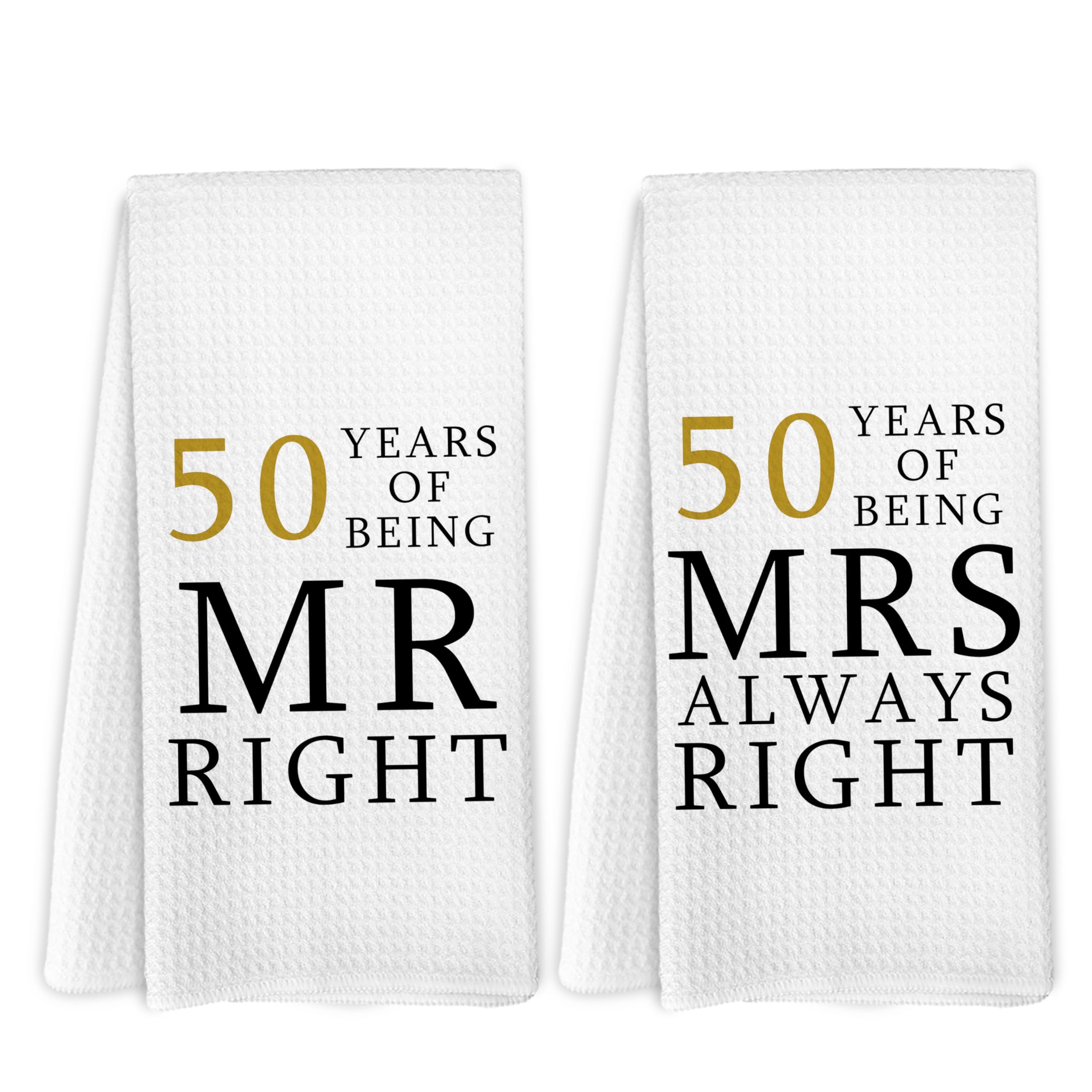 Mr and Mrs Gifts Kitchen Dish Towels Set of 2, 50th Anniversary Wedding Gifts for Him Her Wife Husband Couples Hand Towels for Bat