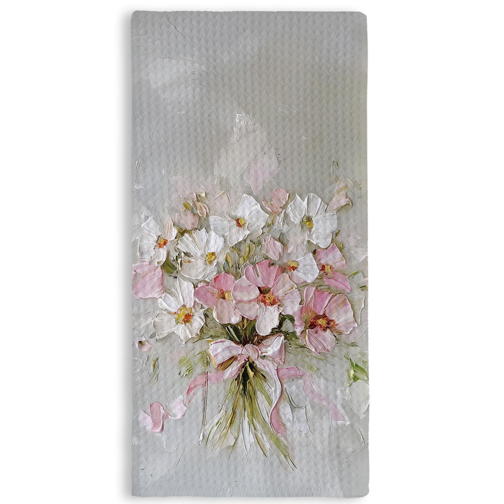 TNUW Floral Kitchen Towels 16×24 Inch, Cottagecore Decor Dish Tea Towels for Kitchen, Coquette Pink Bow Wildflower Bouquet Decorat