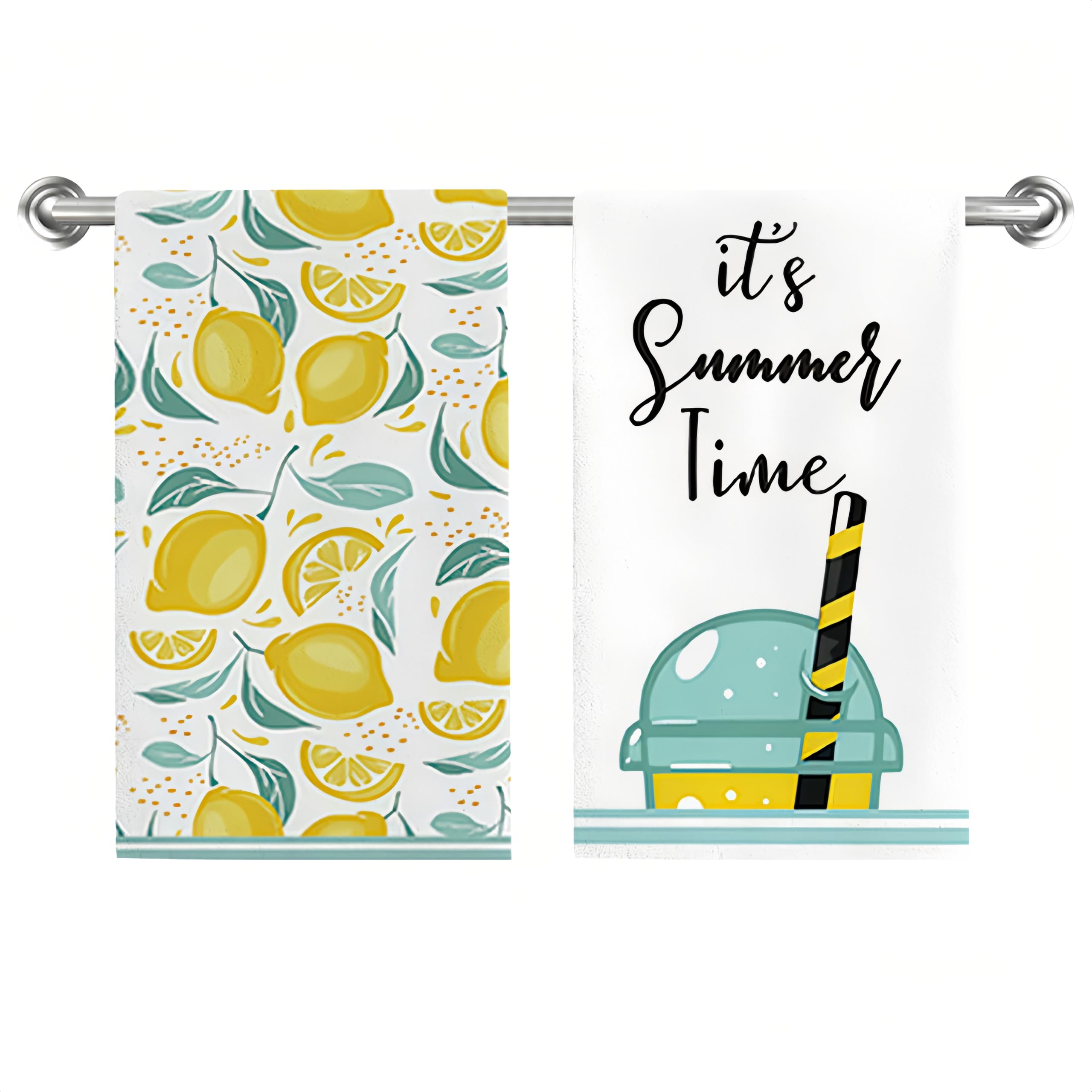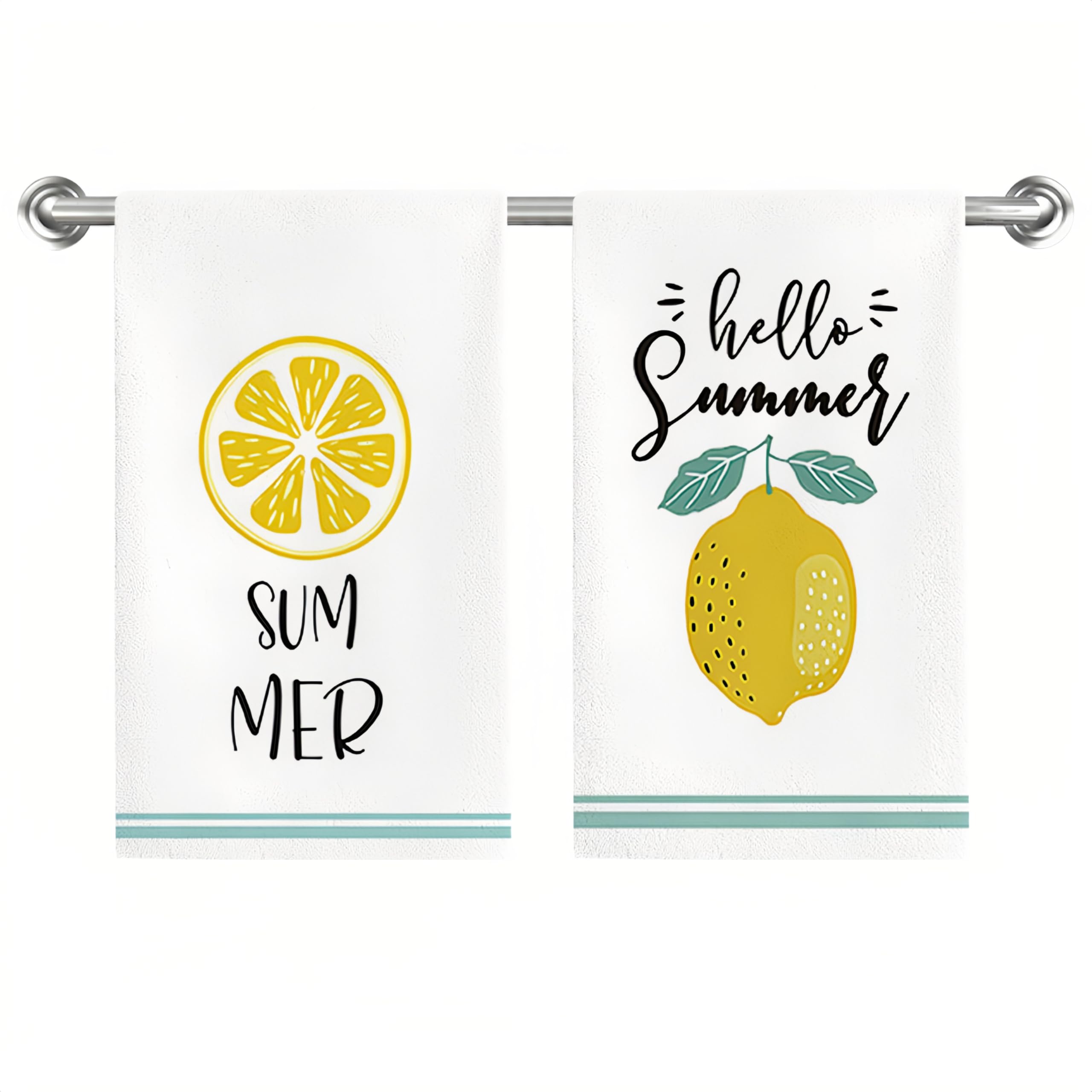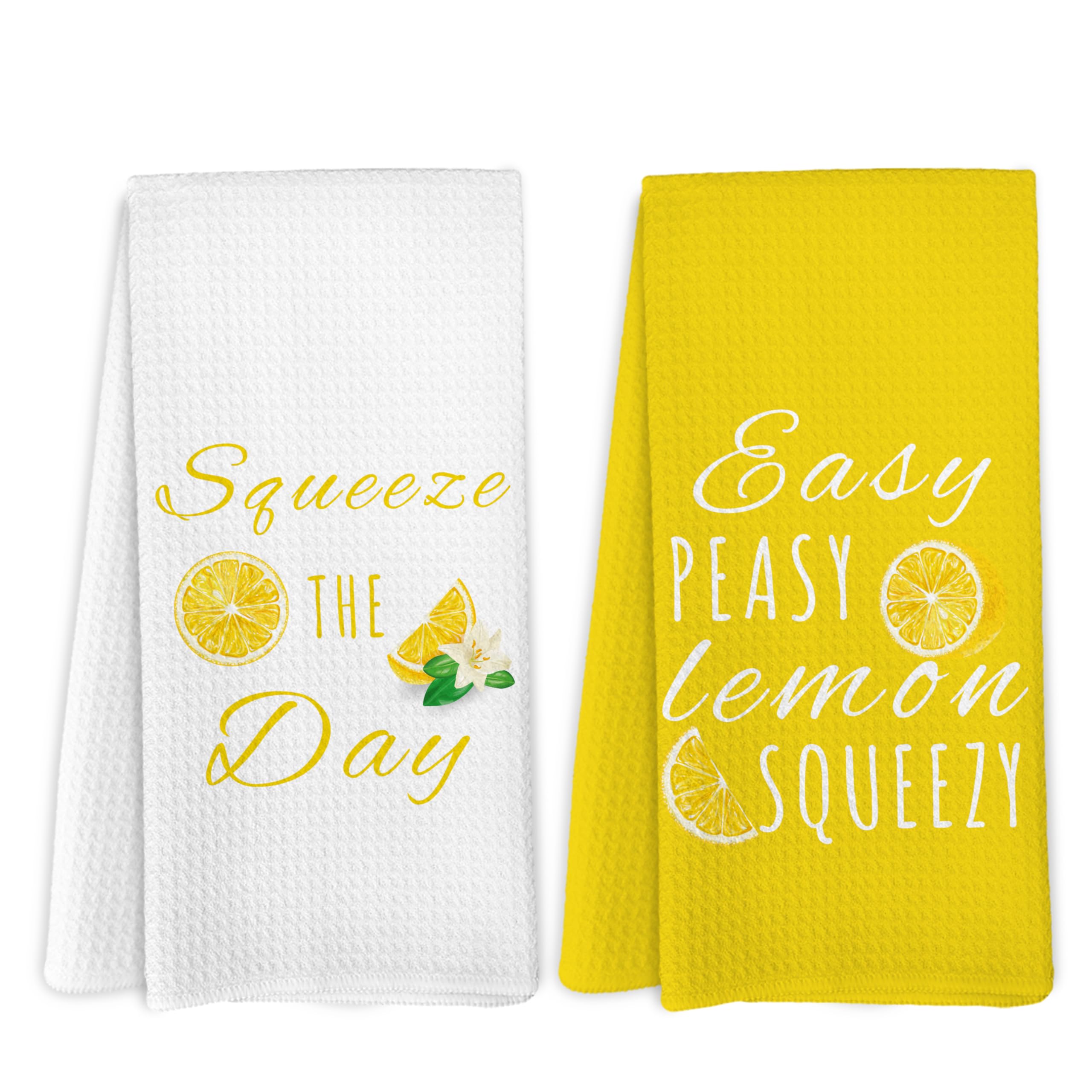 Summer Lemon Kitchen Dish Towels Set of 2, Inspirational Gifts for Women Hand Towels for Bathroom Decor, Lemon Kitchen Decor, 16×2