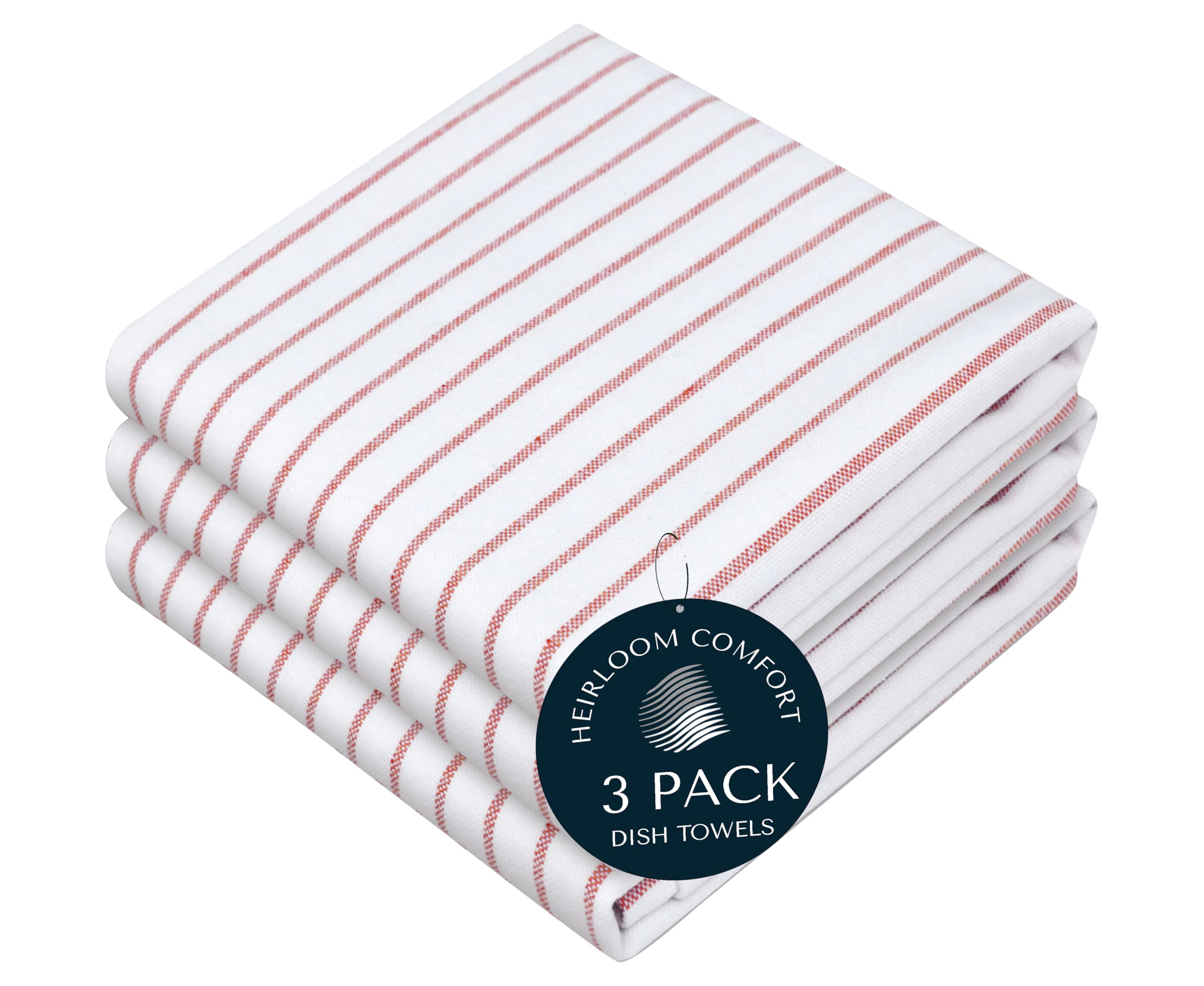 Rust Stripe Dish Towels, 3 Pack, 100% Cotton, Super Absorbent and Quick Dry, Classic Striped Kitchen Towel Set, Durable Wash Cloth