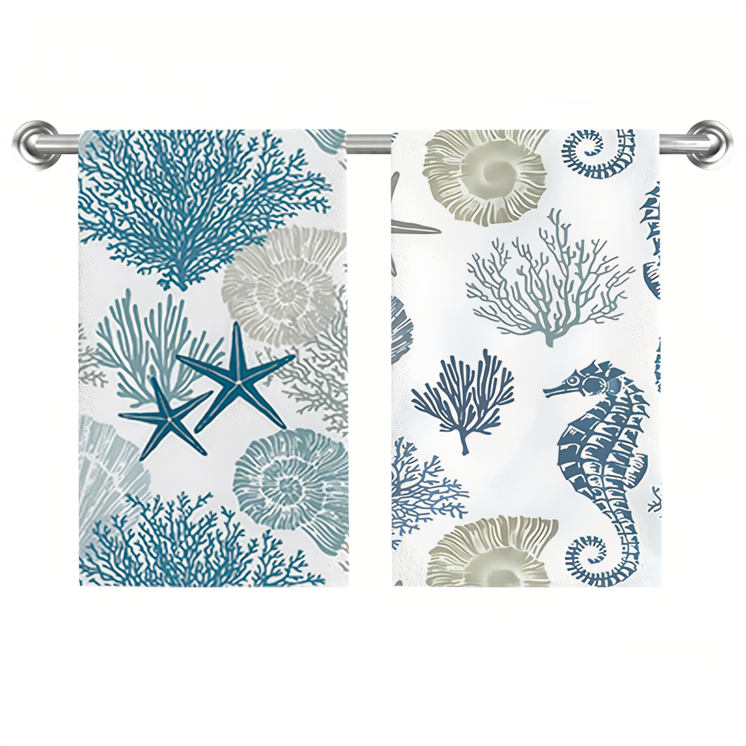 Coastal Ocean Coral Kitchen Towels Dish Towels Set of 2,Blue Summer Hand Towels 18×26 Inch Drying Dishcloth,Seasonal Holiday Dish