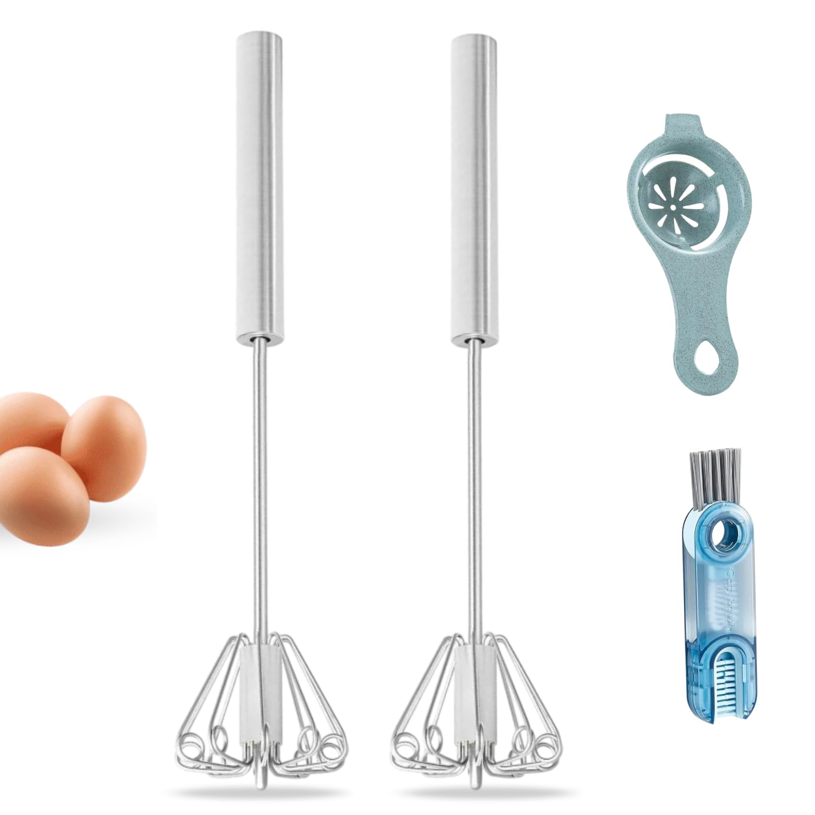 Batidor semiautomático de acero inoxidable actualizado 2025, 2 piezas, fácil de usar, batidor de huevos para hacer crema, batir, m