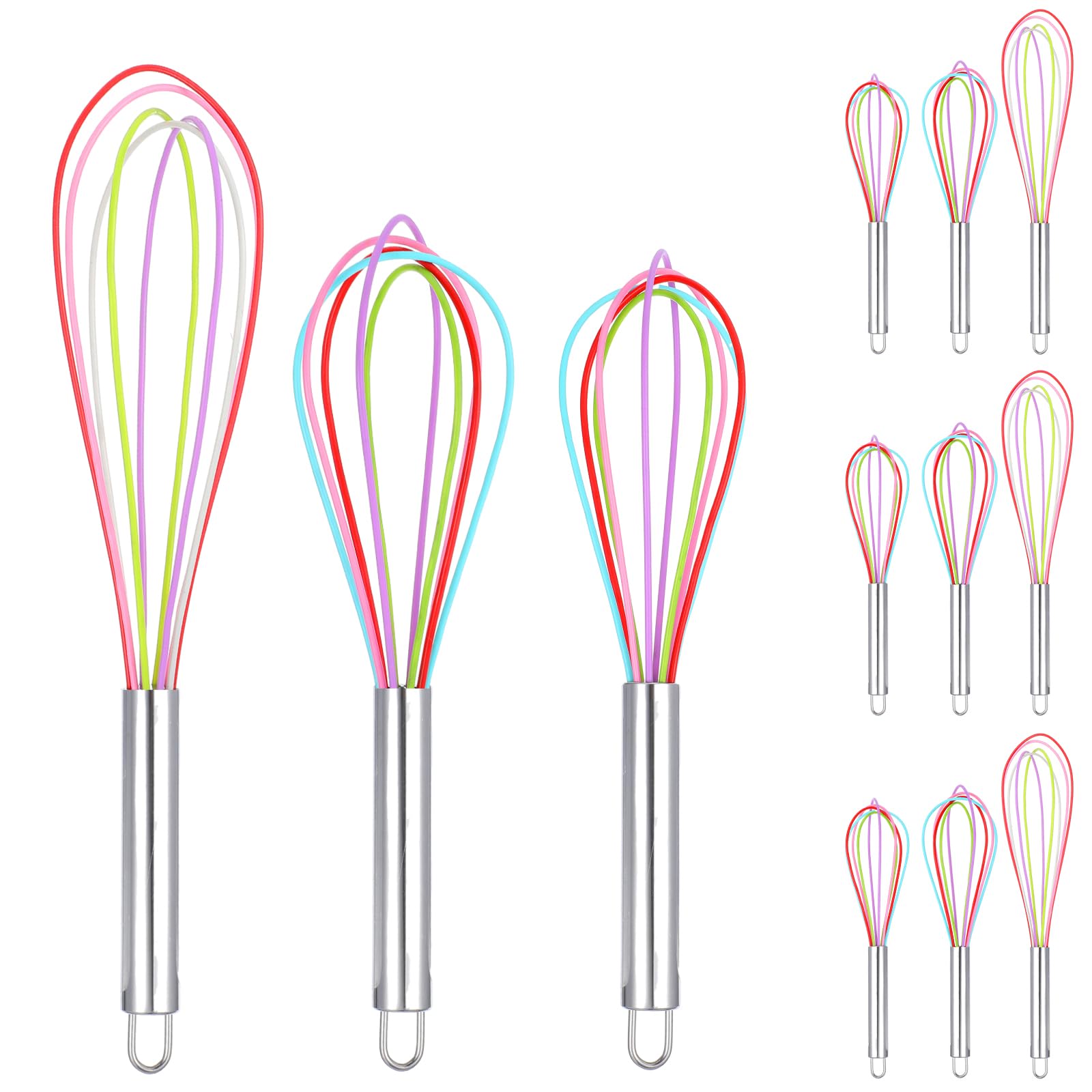 12 batidores de silicona de 8 pulgadas, 10 pulgadas y 12 pulgadas a granel para cocinar, batidores de silicona antiarañazos, batid