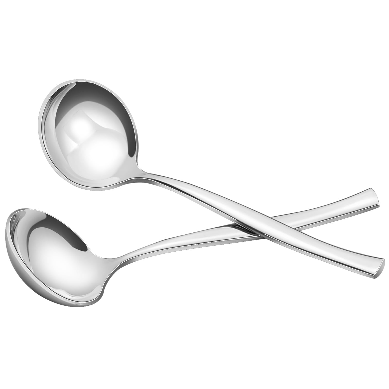 2 cucharones de sopa pequeños, cuchara redonda de acero inoxidable para salsa, 7.4 pulgadas