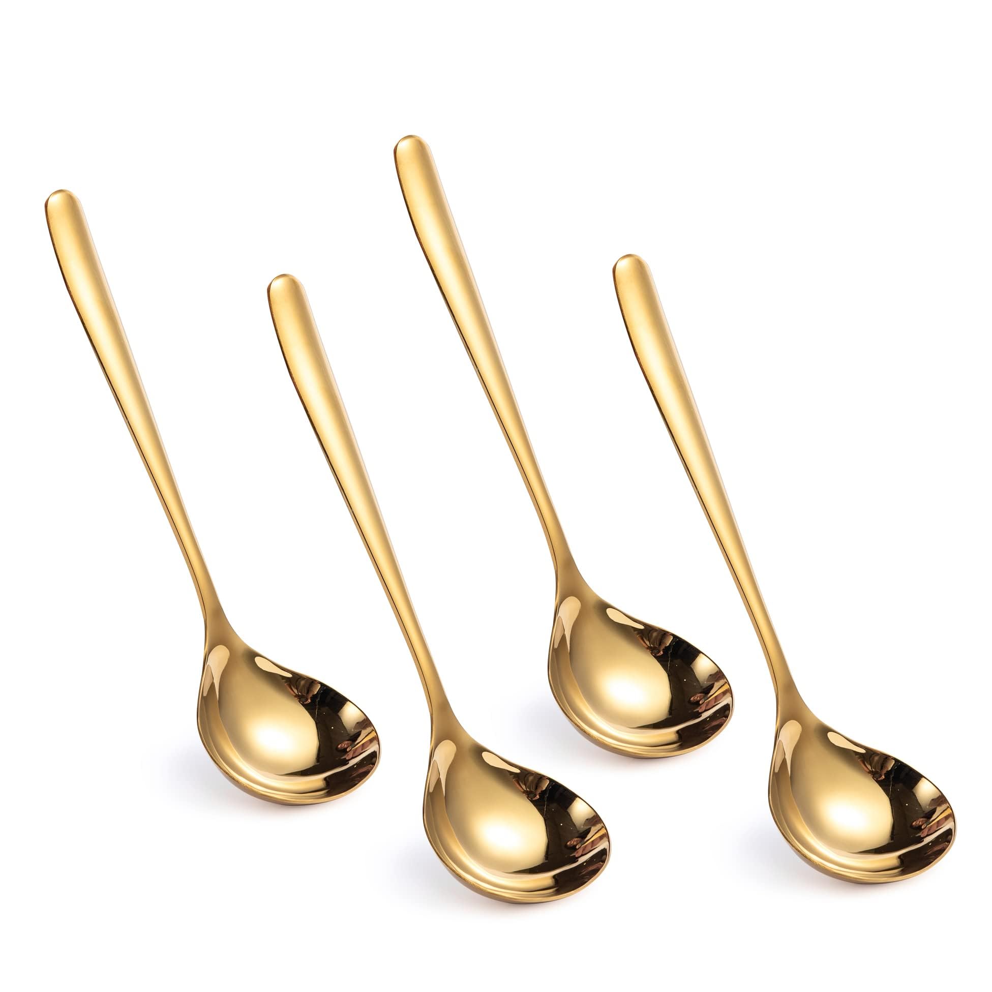 IMEEA Juego de cucharones dorados para salsa, cucharón pequeño de acero inoxidable SUS304, 8 pulgadas, juego de 4