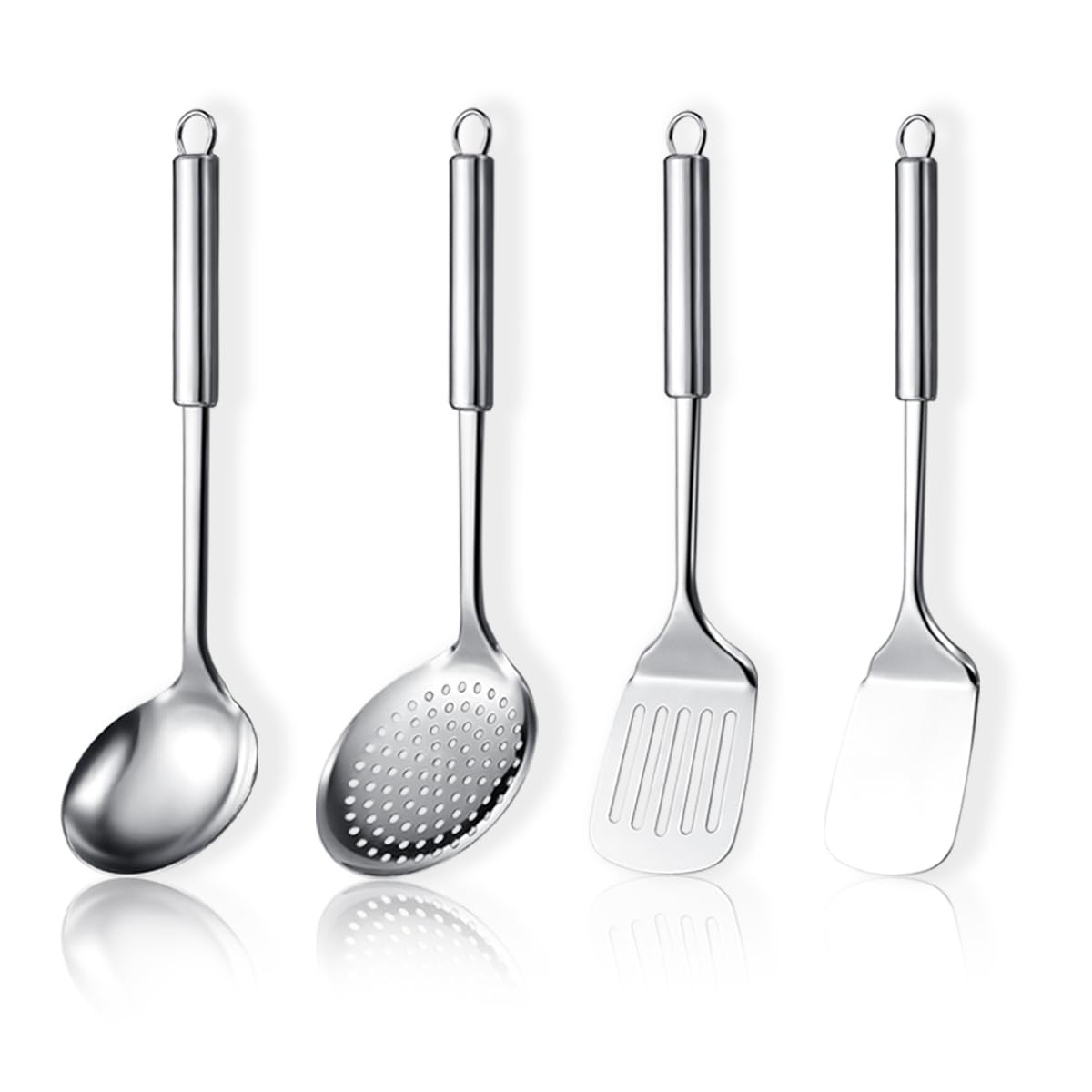 Juego de utensilios de cocina de acero inoxidable, 4 piezas – Turner, Skimmer, Cucharón, Utensilios de cocina