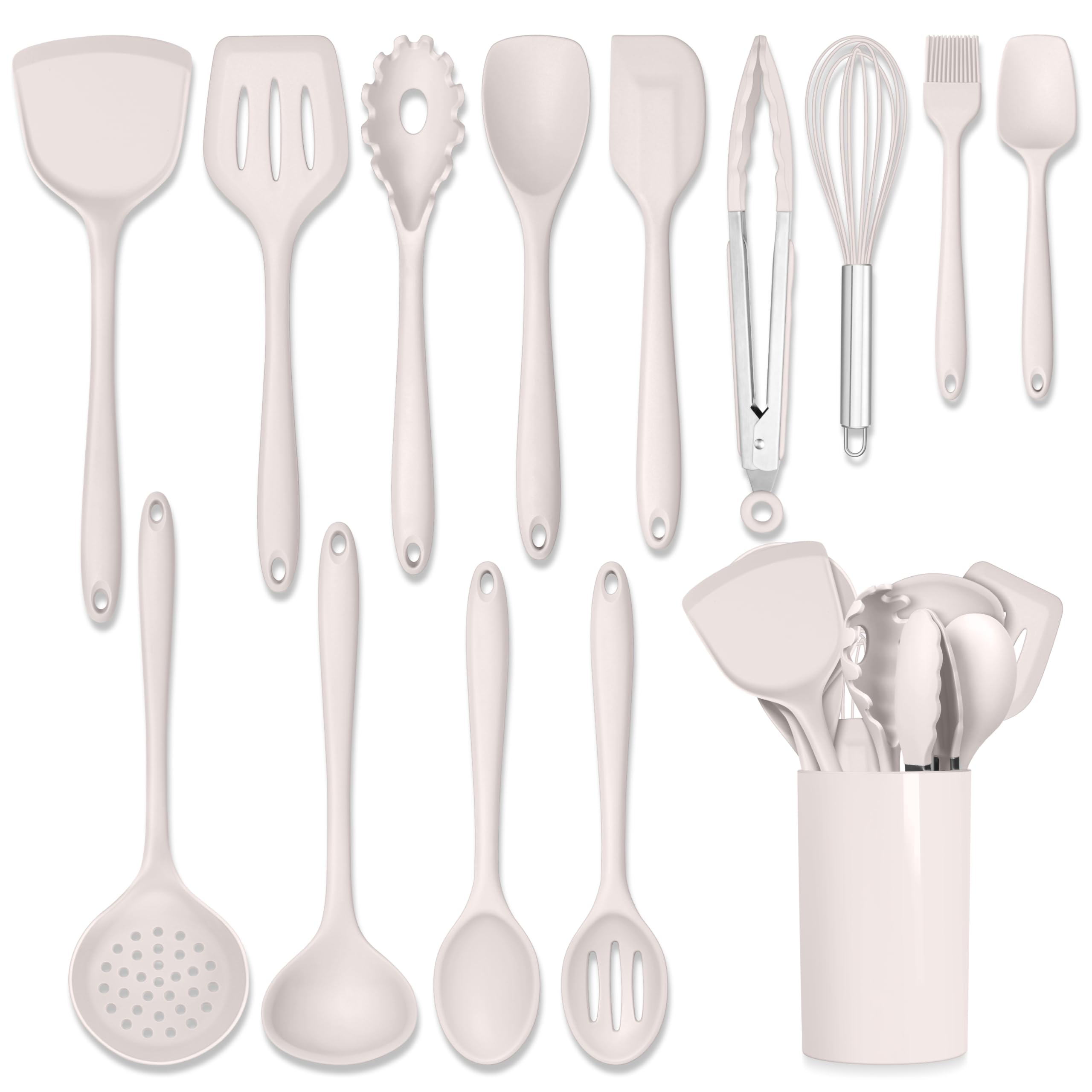 Homikit – Juego de utensilios de cocina de 15 piezas con soporte, utensilios de cocina de silicona de grado alimenticio resistente