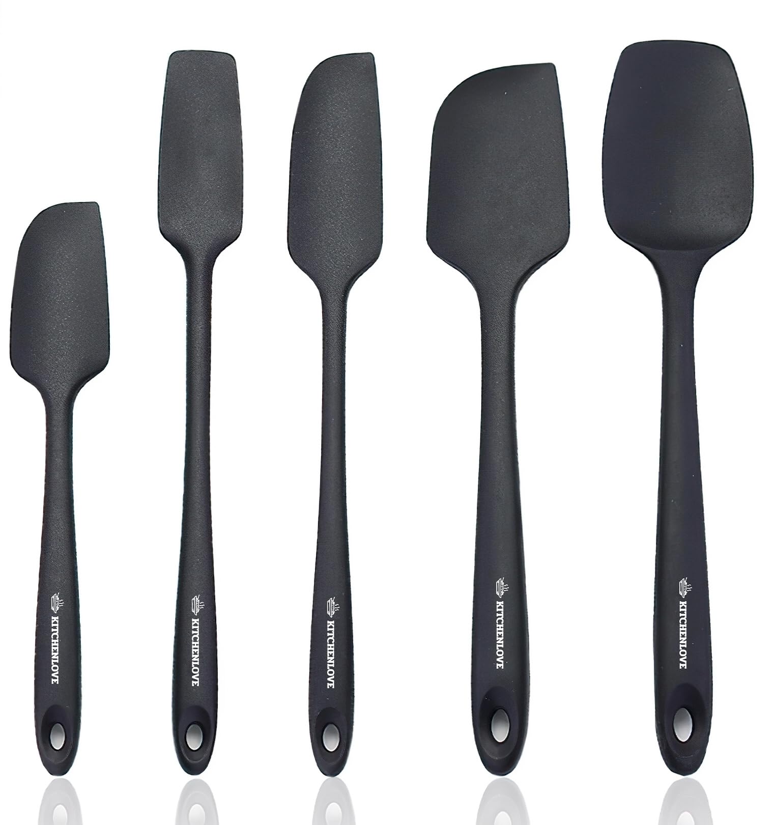 KITCHENLOVE Juego de 5 espátulas de silicona resistentes al calor de alta calidad de 600 °F para hornear, cocinar, mezclar, antiad