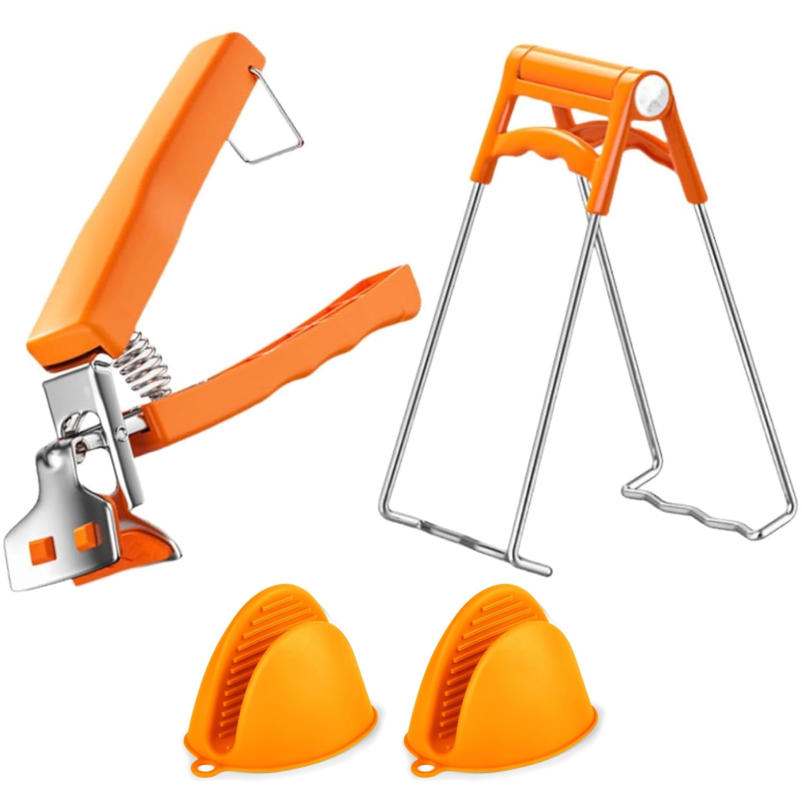 Pinzas elevadoras de tarros de conservas, elevador de tarros de acero inoxidable con agarres de goma, para clip de boca ancha para