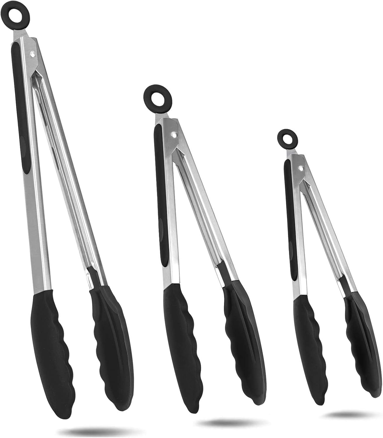 Kitchen Tongs Set [3 Pack] | 7″, 9″ & 12″ | Heat-Resistant | Silicone Tips | Non-Slip Grip with Stainless Steel Handle | Safe Up T