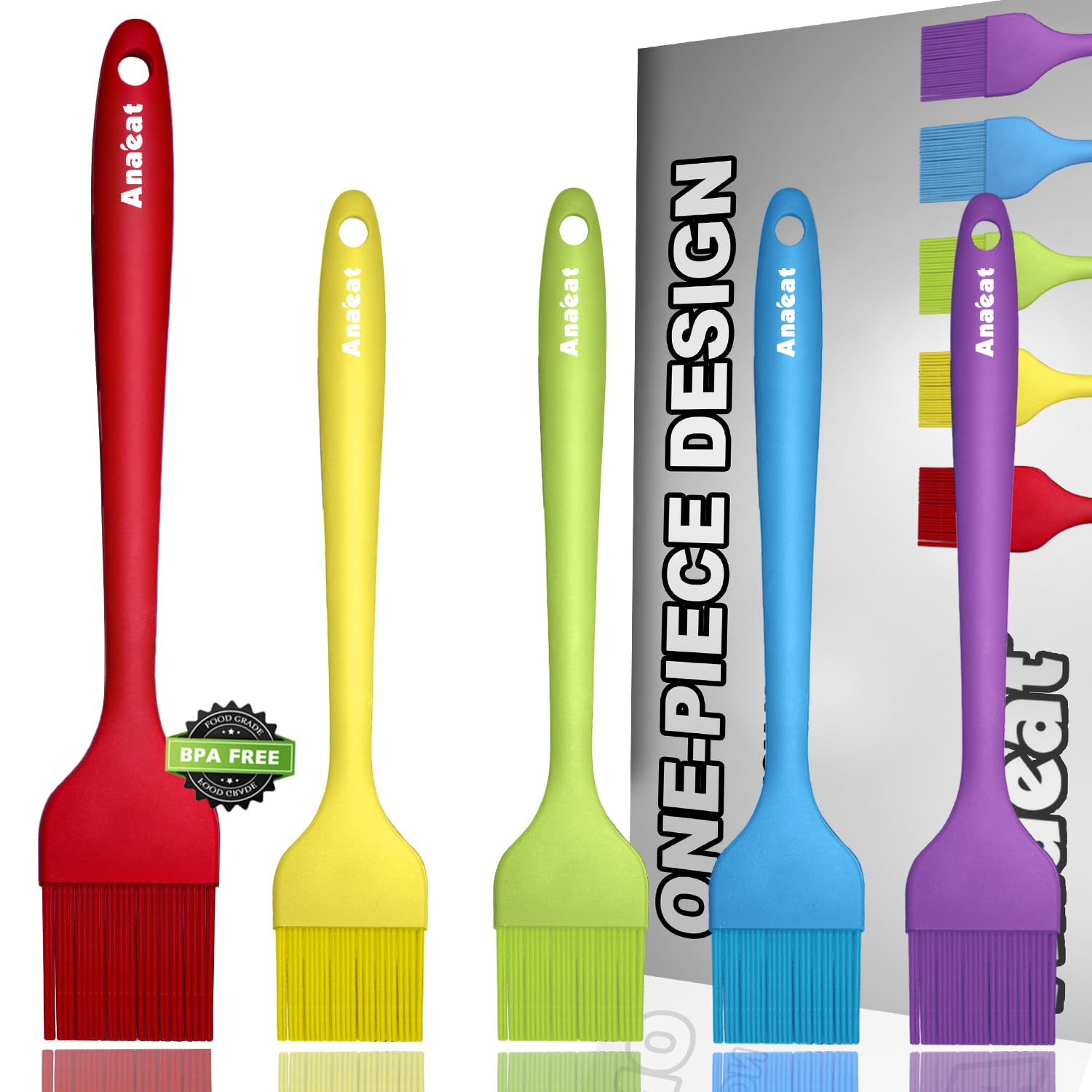 Anaeat Juego de 5 cepillos higiénicos de silicona resistentes al calor, diseño higiénico de una sola pieza, mantequilla de aceite