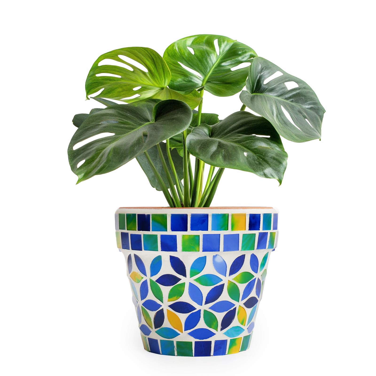 VOREEN Maceta de mosaico de terracota de 4.2 pulgadas, macetas con drenaje, maceta decorativa hecha a mano para interiores y exter