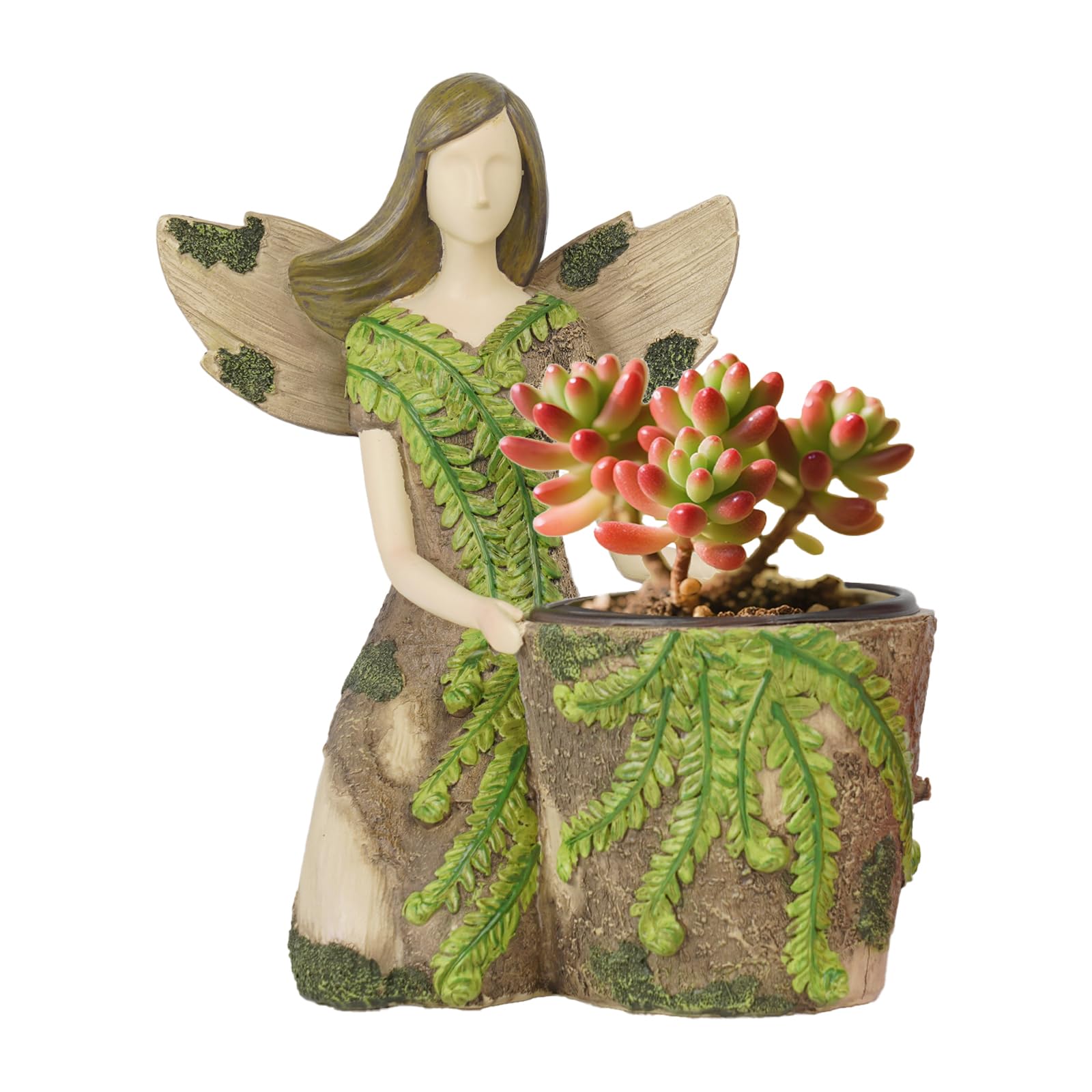 Braxio Maceta de resina de Angel Girl, bonita maceta para suculentas con orificio de drenaje, estatua de ángel guardián de hadas p