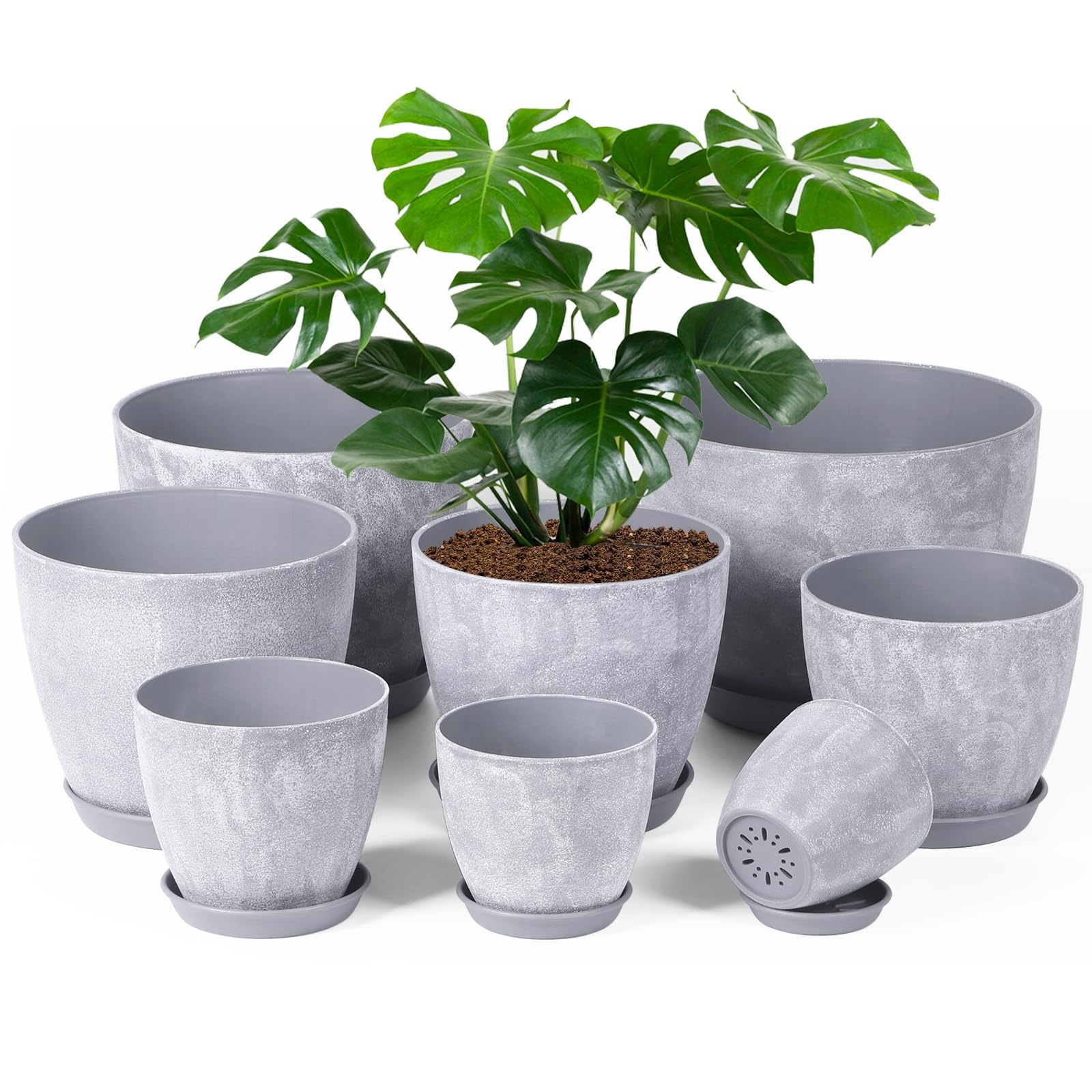 Juego de 8 macetas de plástico de 10/9/8/7.5/6.5/5.7/5/4 pulgadas, maceta decorativa para interiores, maceta grande decorativa par