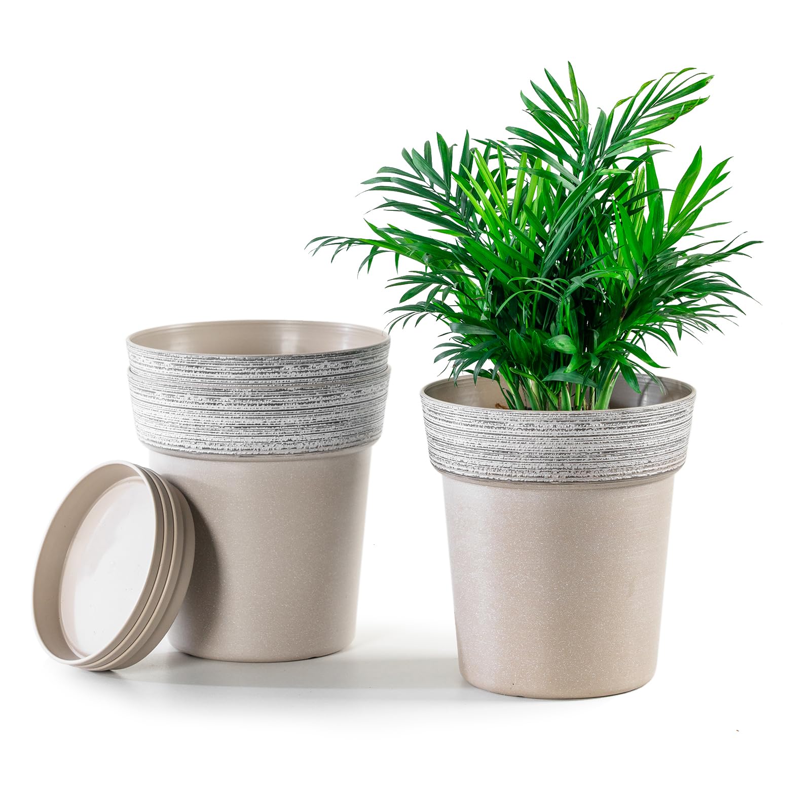 Macetas de plástico para plantas de interior, paquete de 3 de 8 pulgadas, para plantas con drenaje y platillo, decoración moderna