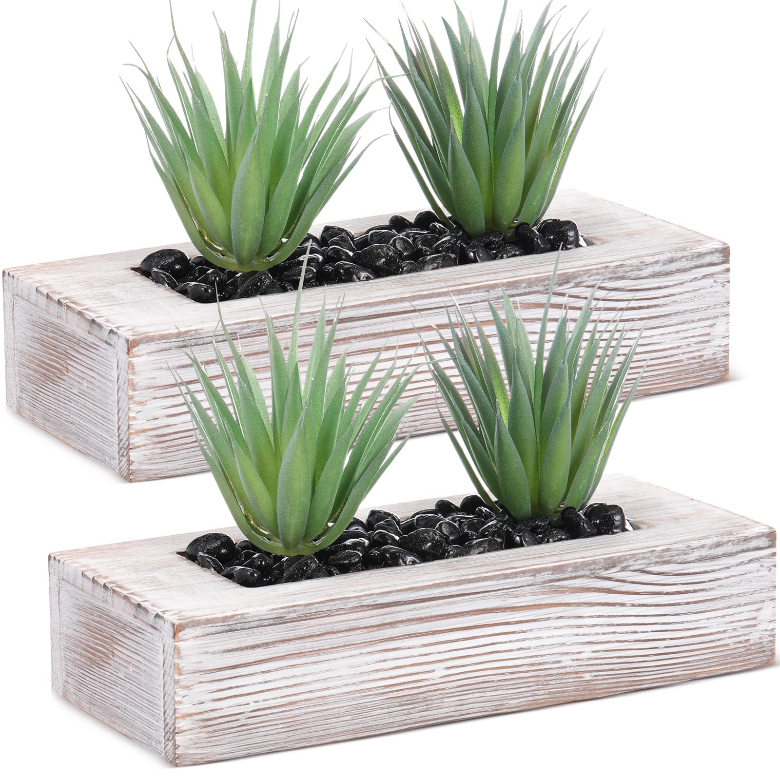 Hotop 2 plantas artificiales de césped verde en madera, maceta decorativa de madera, caja rectangular de vegetación sintética, pla