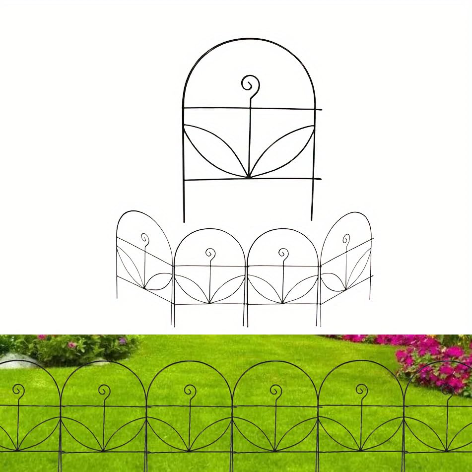 Garden Fences Animal Barrier 5 Panels, Total 5.6ft (L) X18in (H) Decorative Garden Fencing with Leaf Pattern, Metal Wire Panel Fen