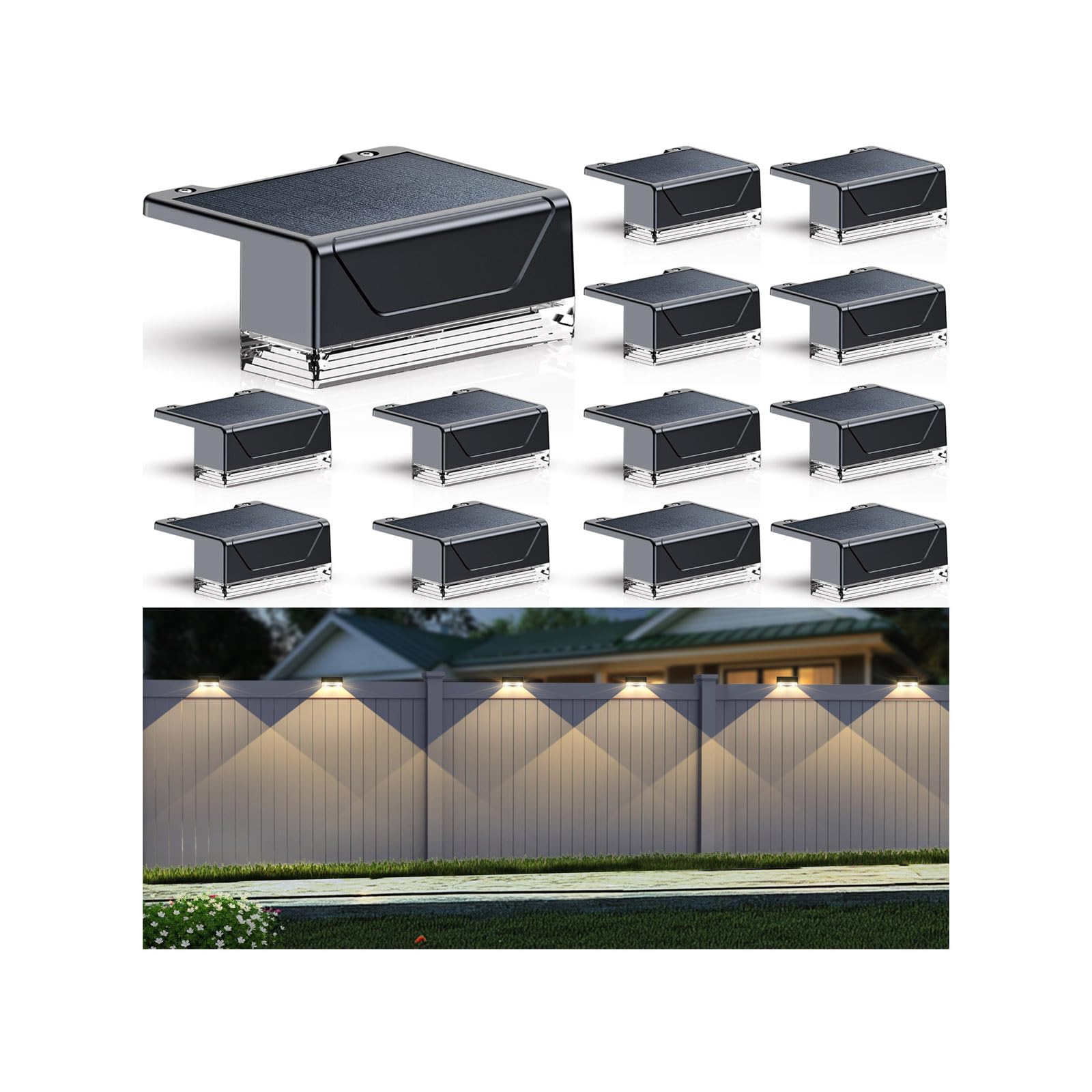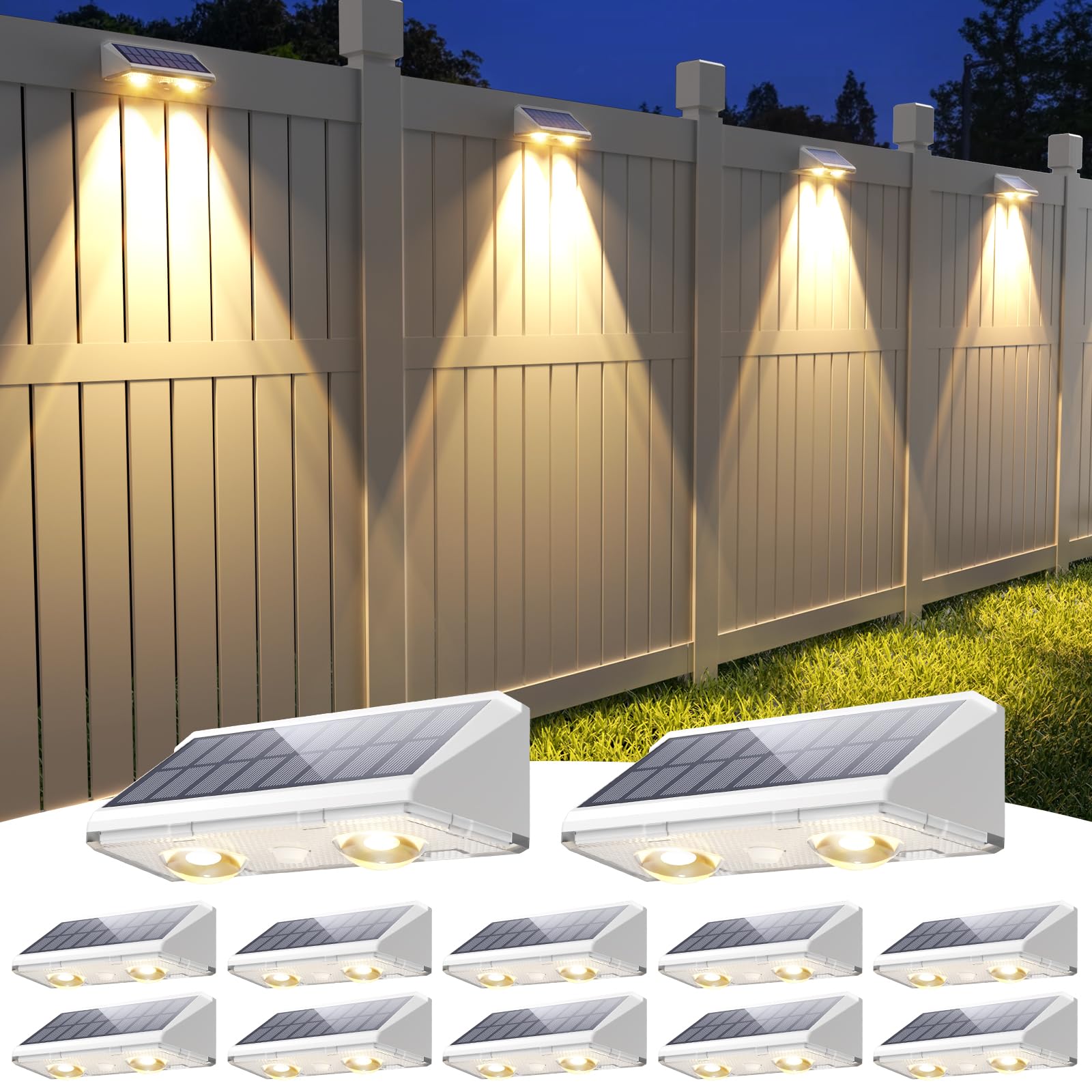 Paquete de 12 luces decorativas para vallas solares para exteriores, impermeables, con lente LED blanca cálida, para pared exterio