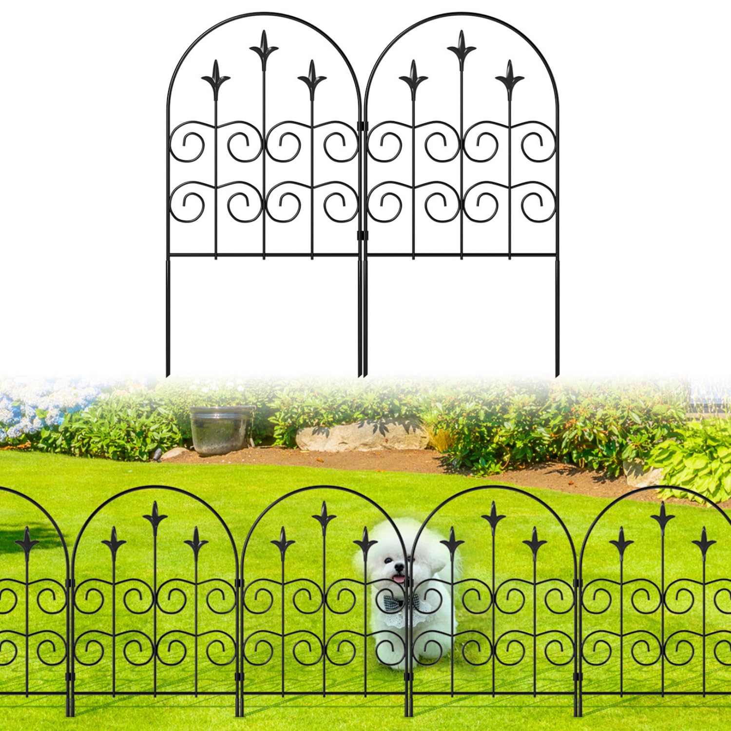 Valla decorativa de jardín de 24 pulgadas de alto x 24 pulgadas de ancho (5 paneles, longitud total de 10 pies) de metal inoxidabl
