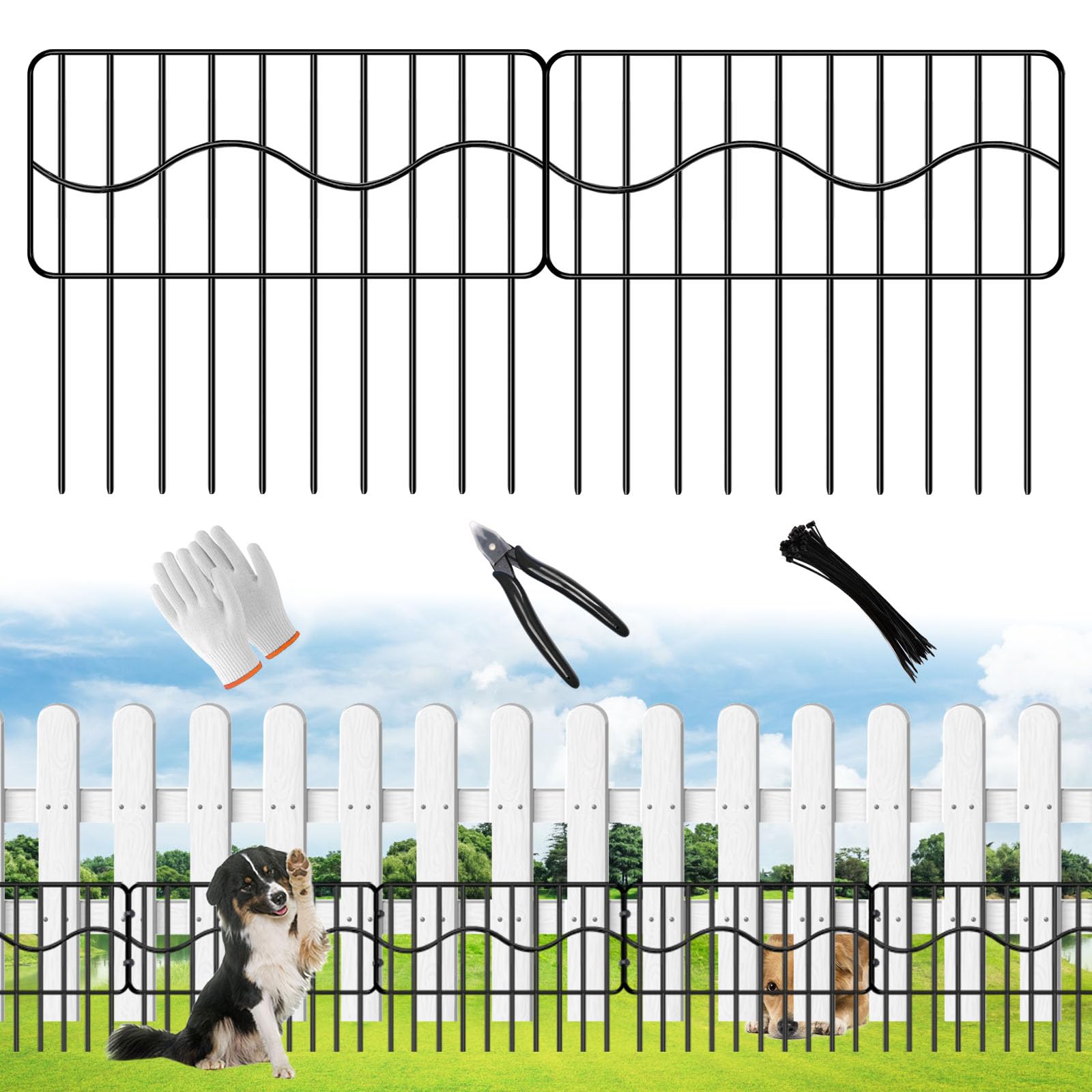 Valla decorativa de jardín de 24 pulgadas de alto x 20 pies de largo, paquete de 10 barreras de animales para perros, bordes de ca